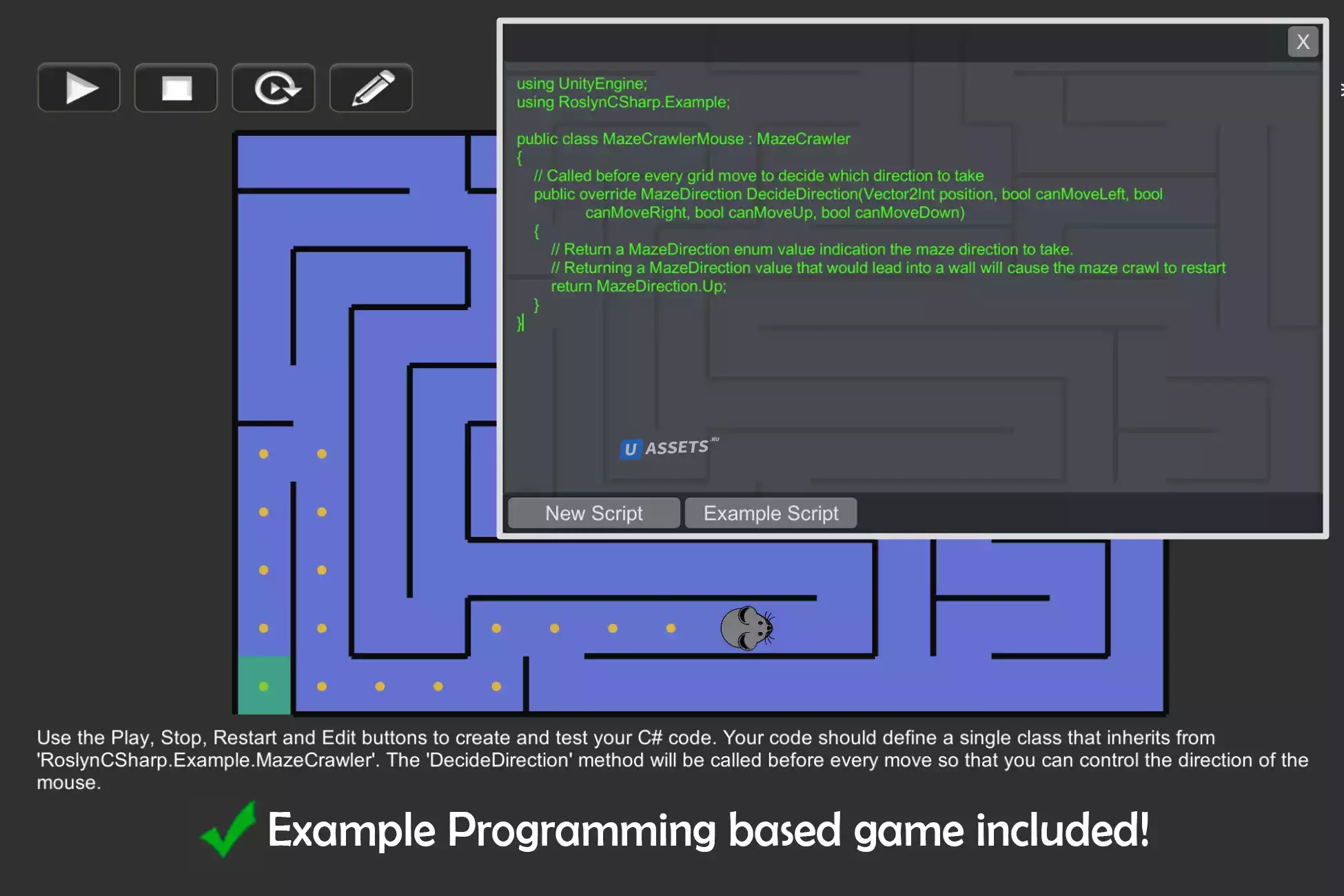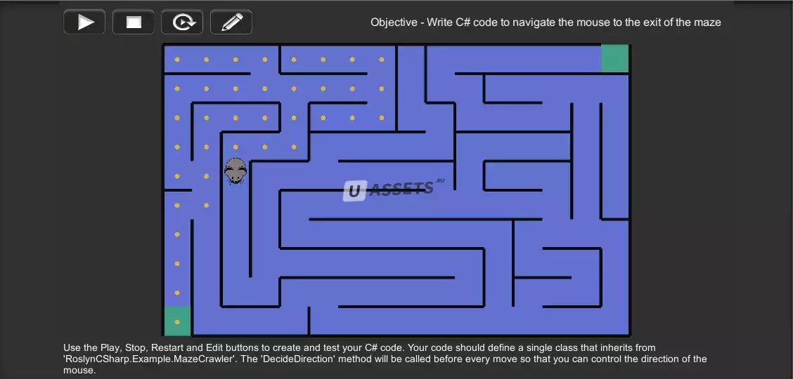Включает в себя небольшую игру, основанную на программировании, цель которой состоит в том, чтобы вывести мышь из лабиринта, написав код, который выполняет принятие решения о направлении.