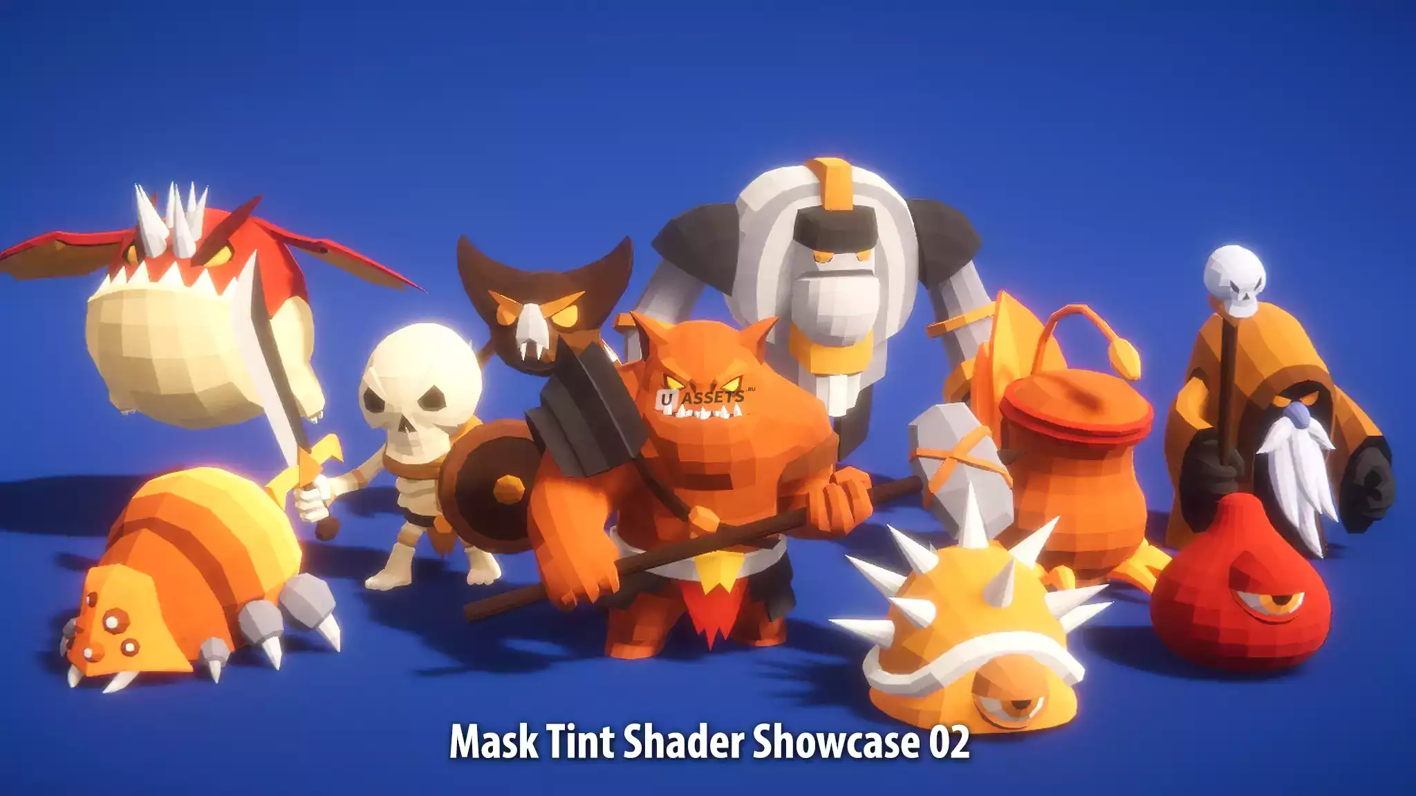 - Различные анимации (более 150) для всех 10 уникальных вражеских монстров. Только двуногие персонажи (орки, скелеты) совместимы с Mecanim Humanoid.