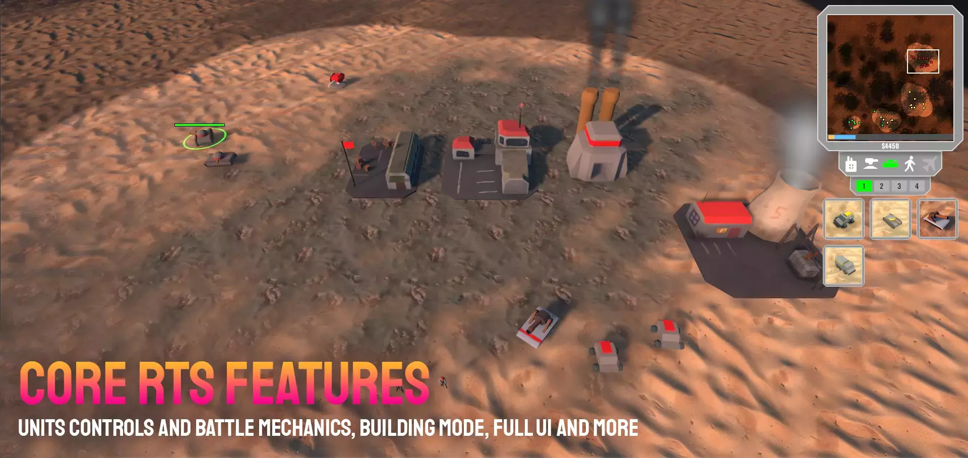 RTS Starter Kit - это все, что вам нужно для создания собственной RTS-игры! В нем есть порядок юнитов, движение и атака, режим строительства, мини-карта и многое, многое другое. Прост в использовании, не требует кода для добавления своего контента для прототипа игры и минимального кода для реализации ваших собственных функций. Стиль игры, представленный в этом наборе, похож на серию игр C&C.