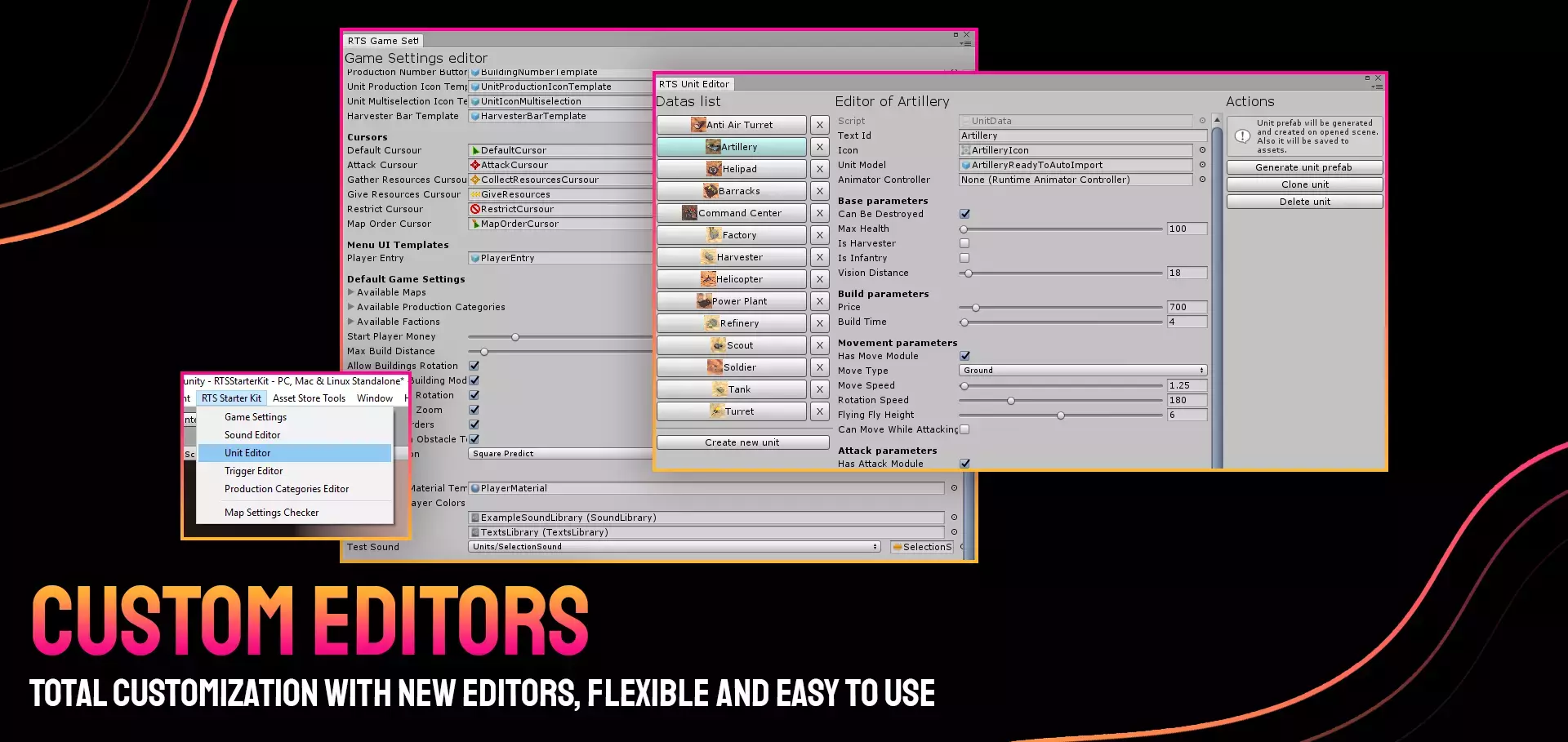 - Редактор юнитов, редактор производственных категорий и окна настроек игры ускорят вашу работу по добавлению нового контента.