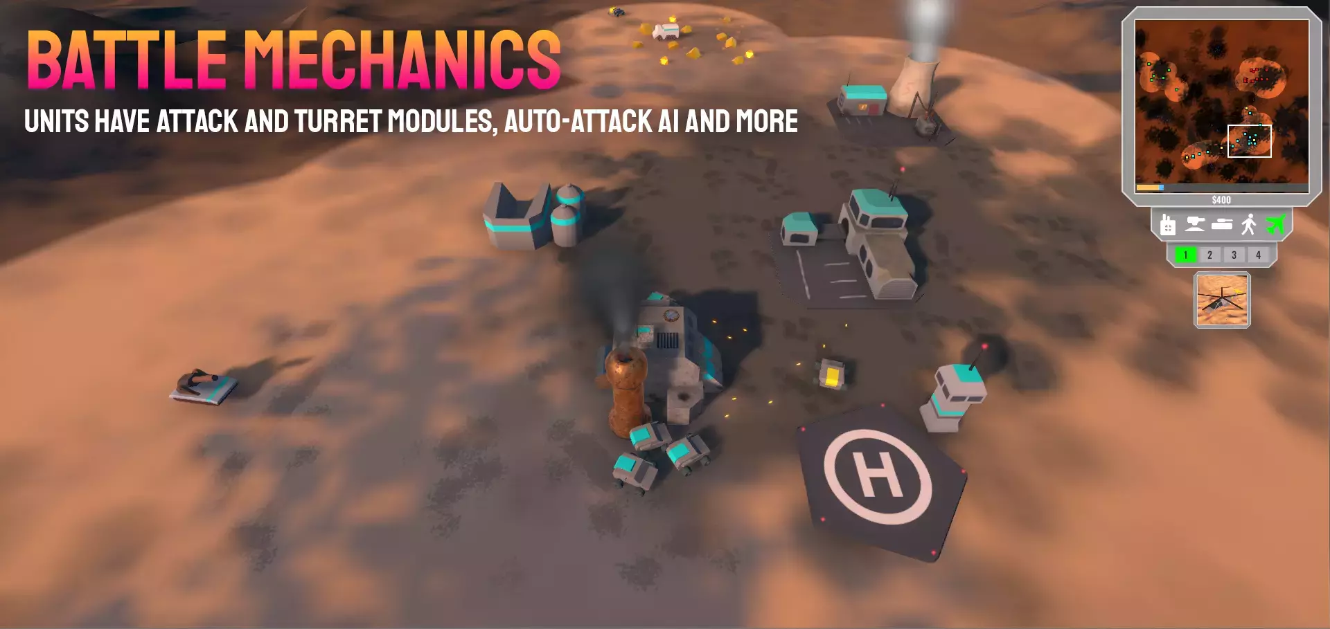 - Включен простой ИИ, который строит базу и юнитов, отправляет группы юнитов атаковать игрока и других врагов. Мы работаем над улучшением поведения ИИ.