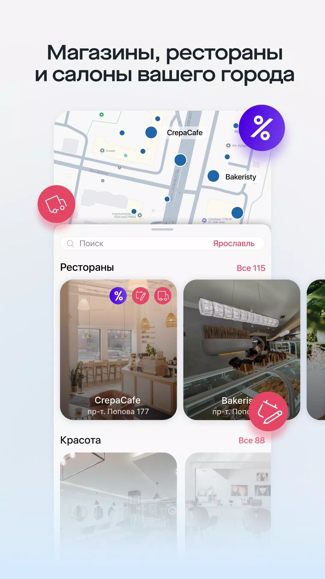 Приложение позволяет находить новые места, сохранять список часто посещаемых заведений и выстраивать удобную коммуникацию из единого интерфейса. Saby Get также отправляет уведомления об открытии новых точек и специальных акциях в вашем районе.