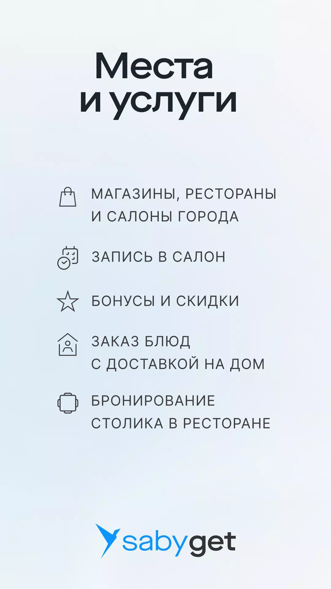 Saby Get — это универсальное приложение для взаимодействия с различными заведениями и сервисами. Оно объединяет в одном месте все ваши любимые рестораны, салоны красоты и магазины, упрощая процесс общения и заказа.