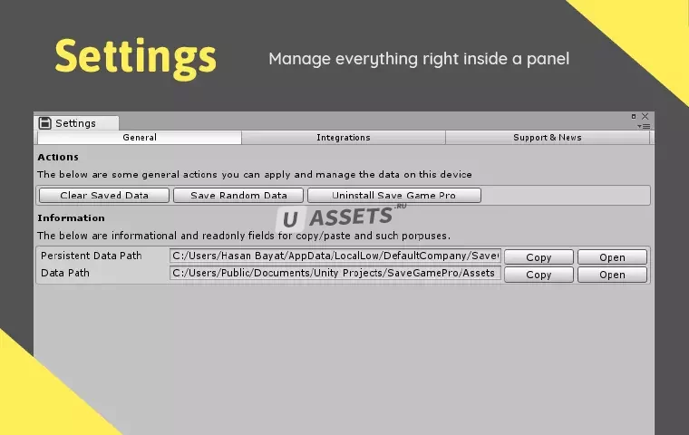 Save Game Pro - это комплексное, мощное и многофункциональное решение для сохранения игр для Unity (игровой движок), которое позволяет сохранять все, такие как Компоненты, Типы данных, игровые объекты, включая пользовательские типы данных, везде, включая Веб и облако, Локальное хранилище, Ссылки на игроков, базу данных.