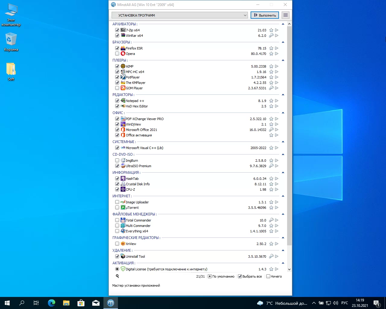 - Архиваторы: WinRAR v6.2.0, 7-ZIP v21.03.