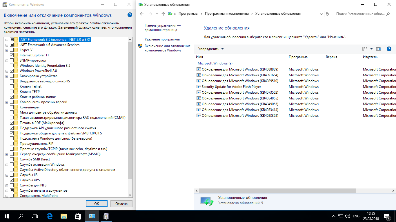 — Включен .Net Framework 3.5 (включая 2.0);