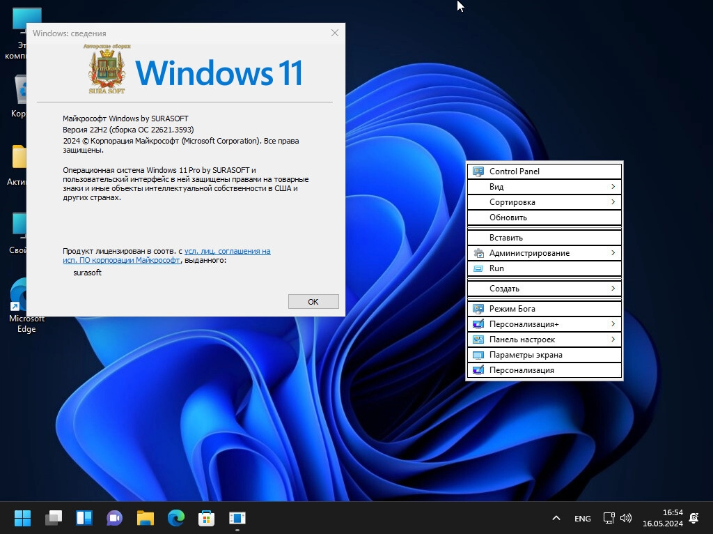 Версия 22261_22361.3593 Сборка Windows 11 сделана на основе оригинальных образов MSDN, включающих обновления по 14 мая 2024 года и SmartFix 2.4.8. Помимо обновлений, интегрированы .Net Framework 4.8.1, Visual C++ 2005-2022 (Upd 03.03.2023),