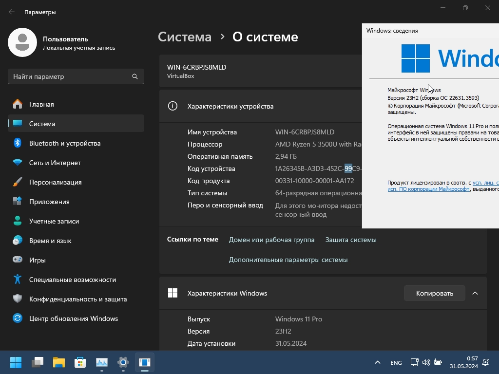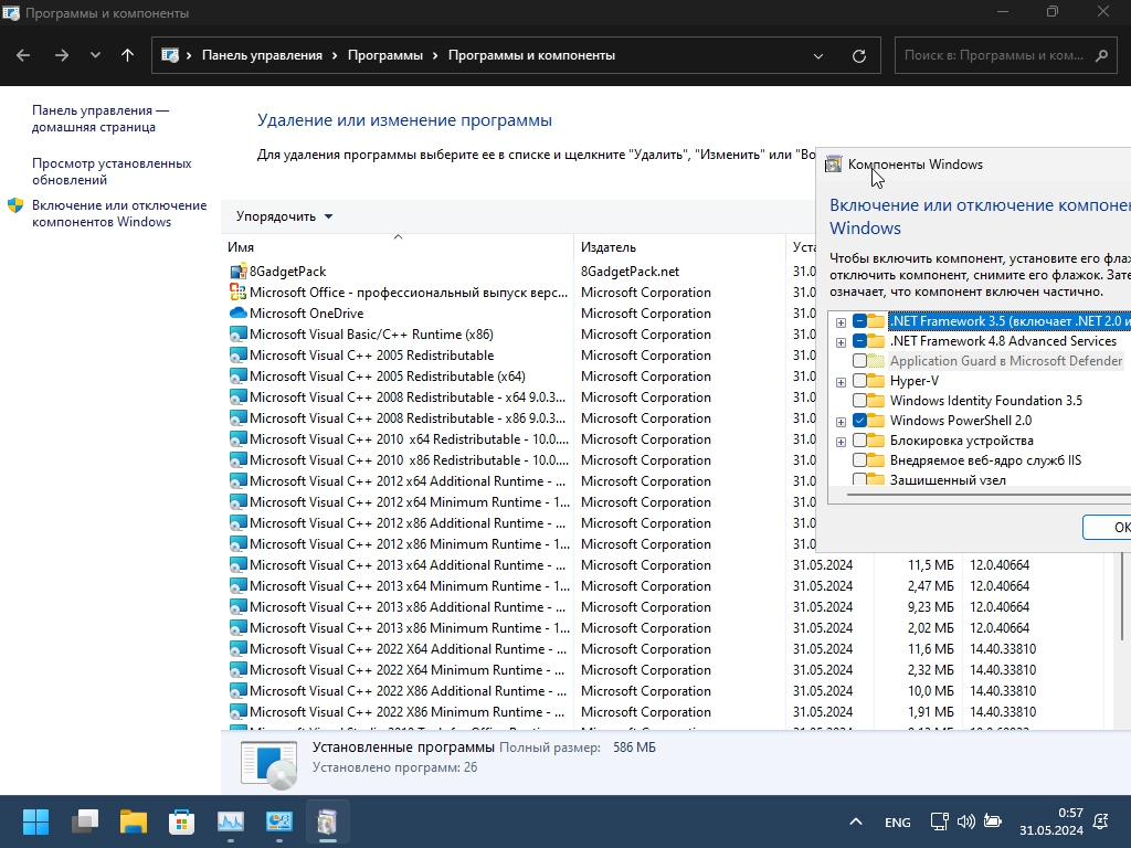 Windows 11, версия 23H2, обновлённая до May 2024, без офиса и английского языка, основана на оригинальном дистрибутиве Microsoft Windows 11 [10.0.22631.3593], Version 23H2 (Updated May 2024). Интегрирован Framework 3.5.