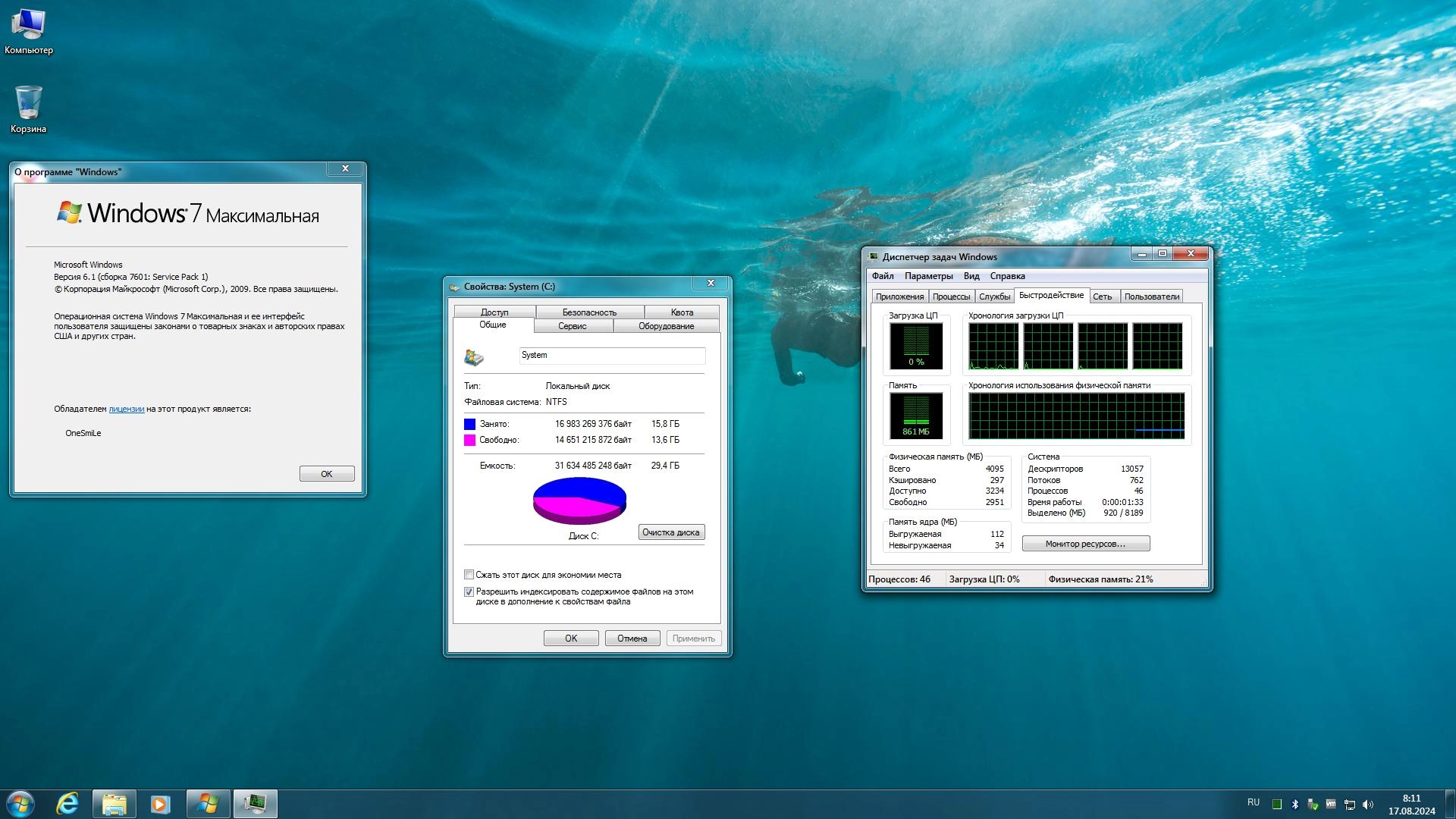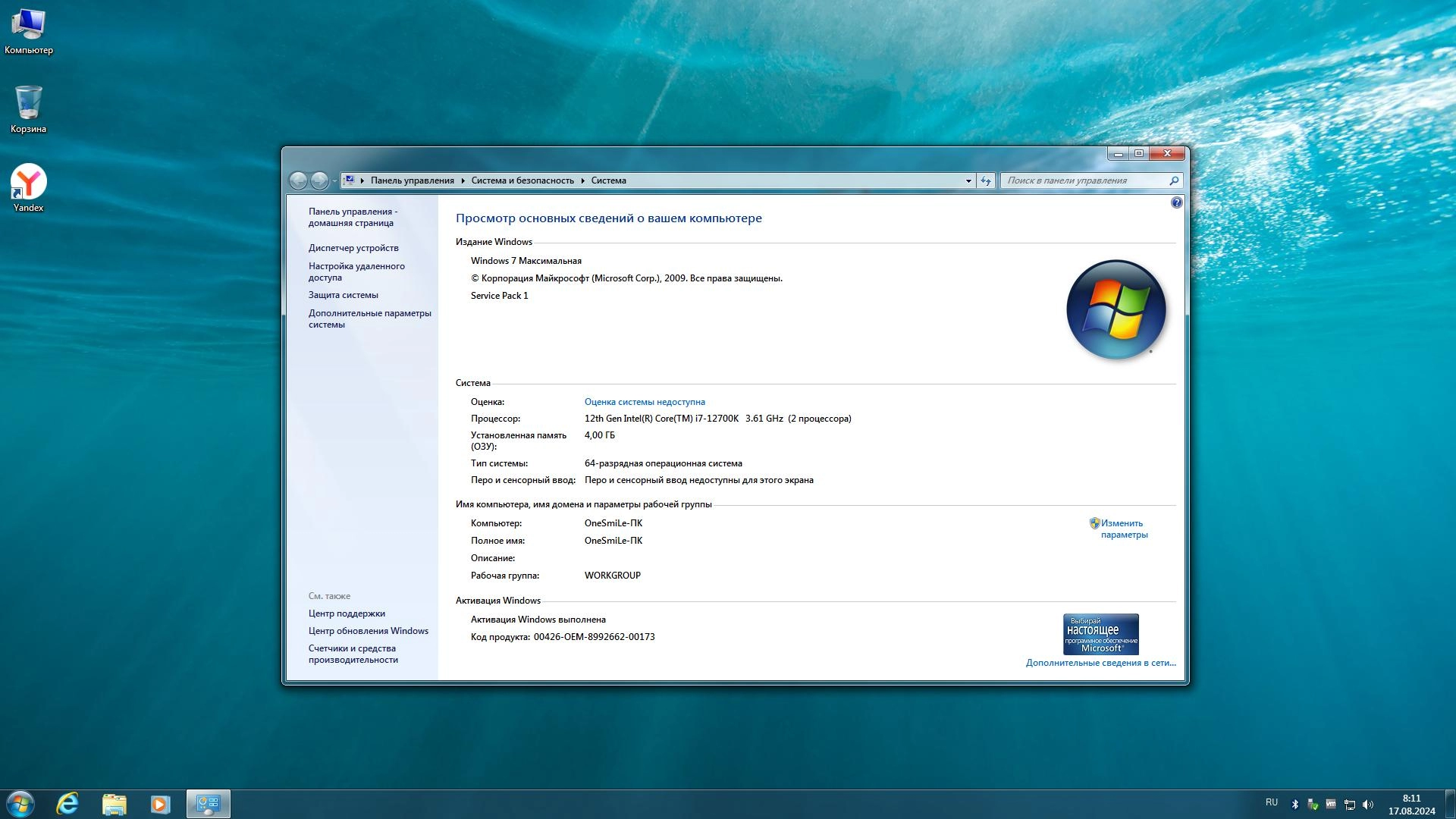 Windows 7 SP1 x64 Rus by OneSmiLe [17.08.2024]