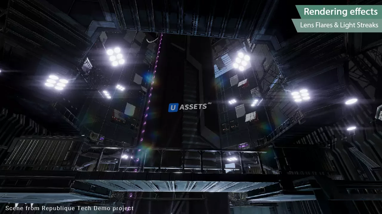 • Блики линз Рисуйте процедурные блики линз на ярких пятнах.