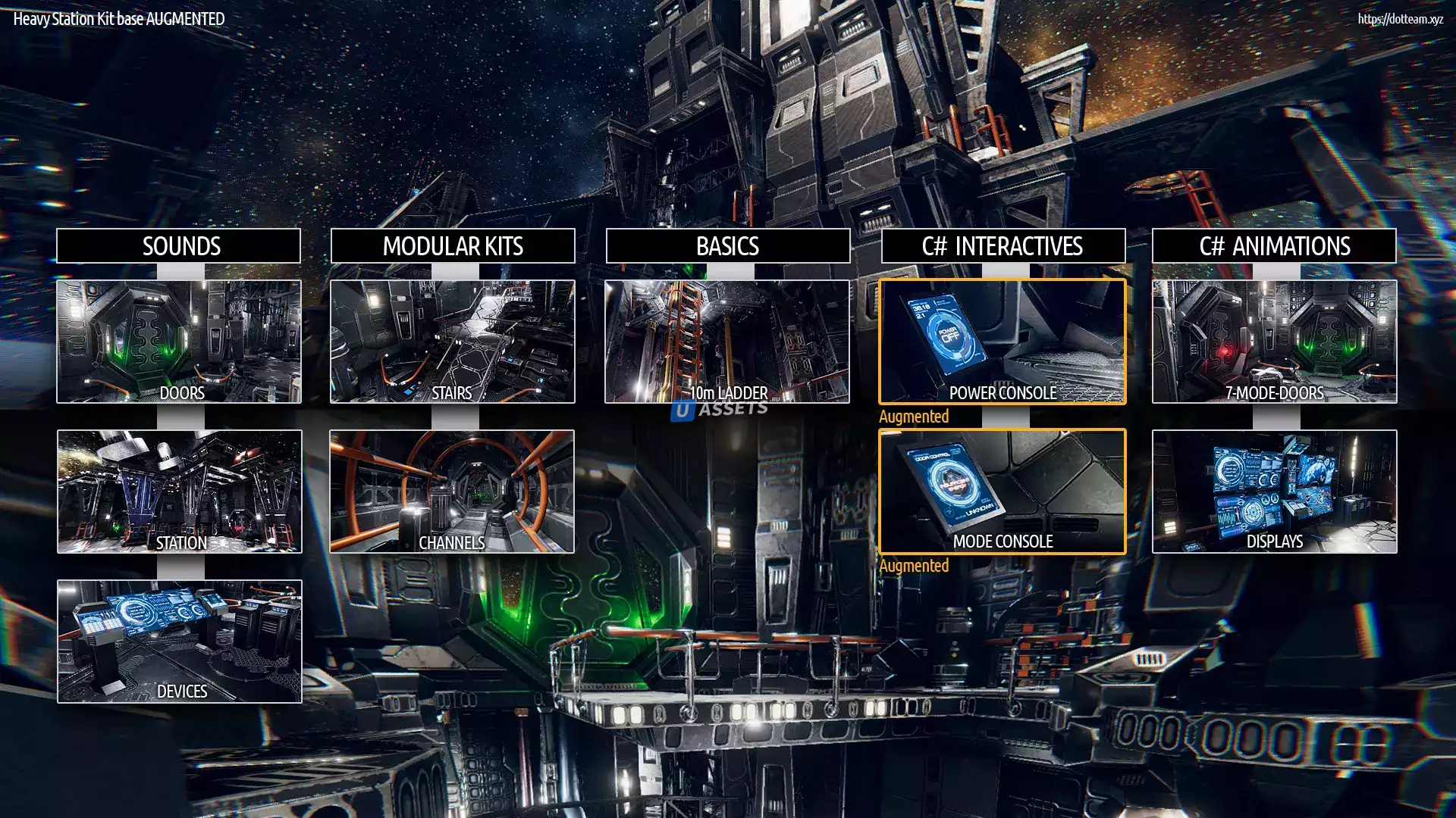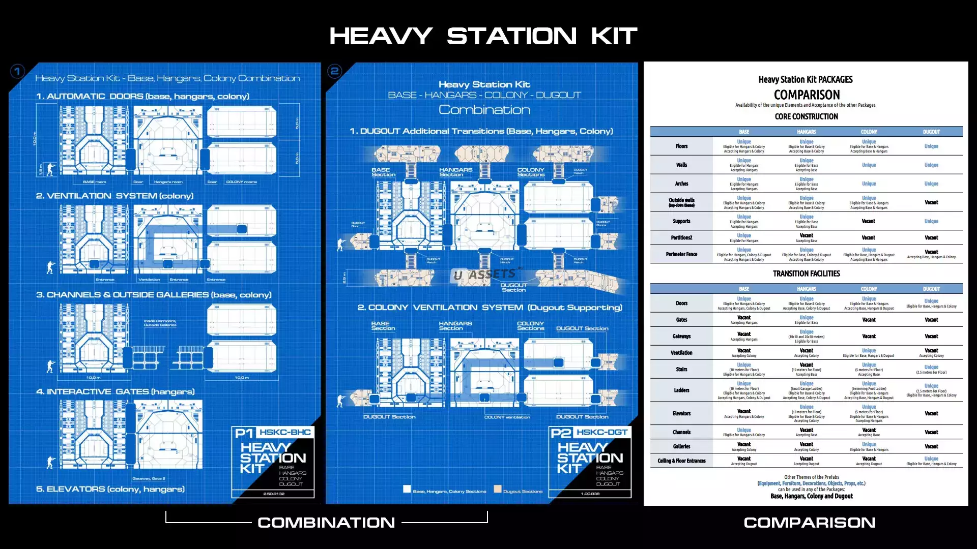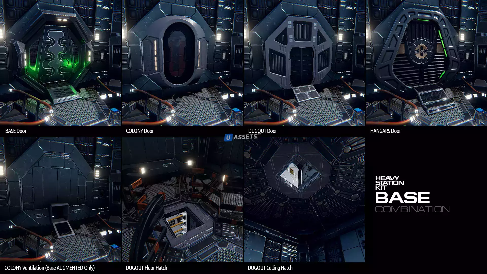 Уникальные основные конструктивные элементы базы набора Sci-Fi Heavy Station: Полы, Стены, Арки, Наружные стены (Тема сверху вниз), Опоры и Перегородки2.