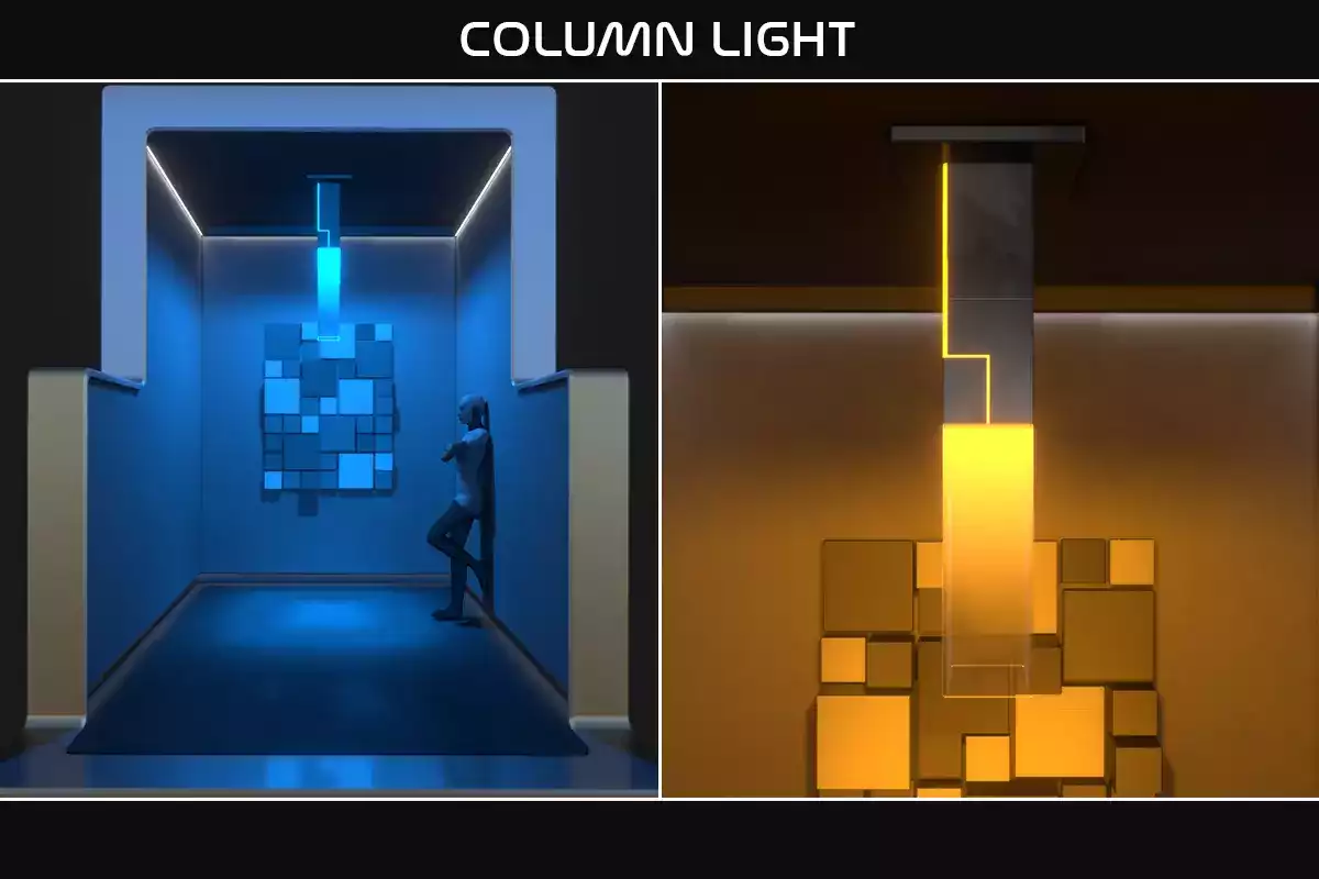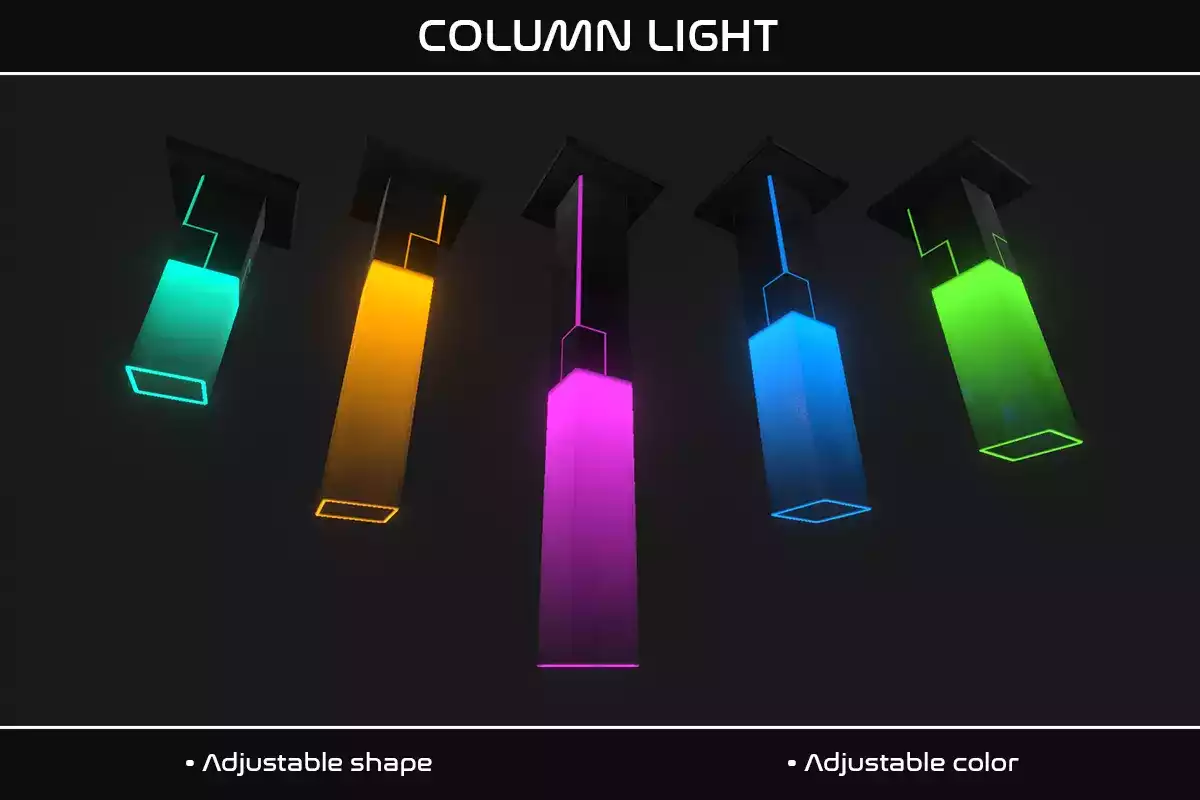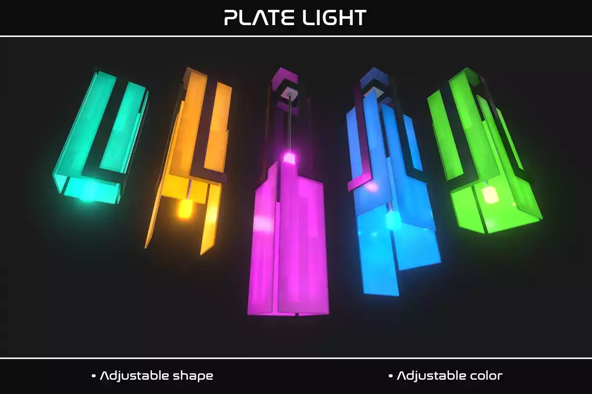 Каждый источник света поставляется с пользовательским редакторским скриптом, позволяющим легко изменять небольшой диапазон параметров, таких как цвет / интенсивность света, форма, расстояние подвешивания и текстура, прямо в редакторе. Все светильники настроены на смешанное и/или запеченное освещение. используются текстуры 1k, которые применяются к стандартному шейдеру PBR.