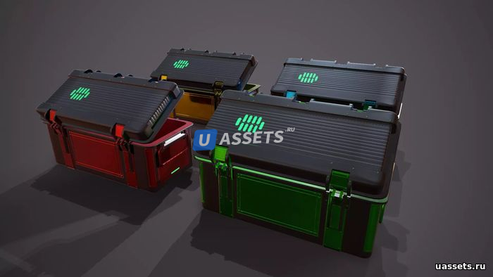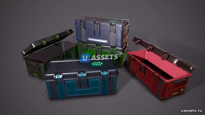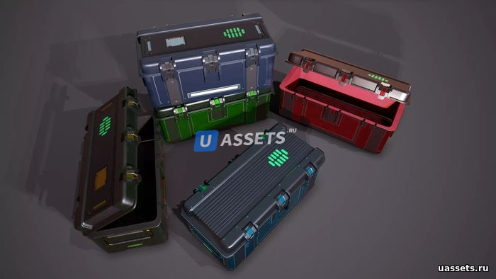 Пакет состоит из двух моделей сундуков, двух скинов с текстурами PBR. Цвета можно выбрать с помощью средства выбора цвета.