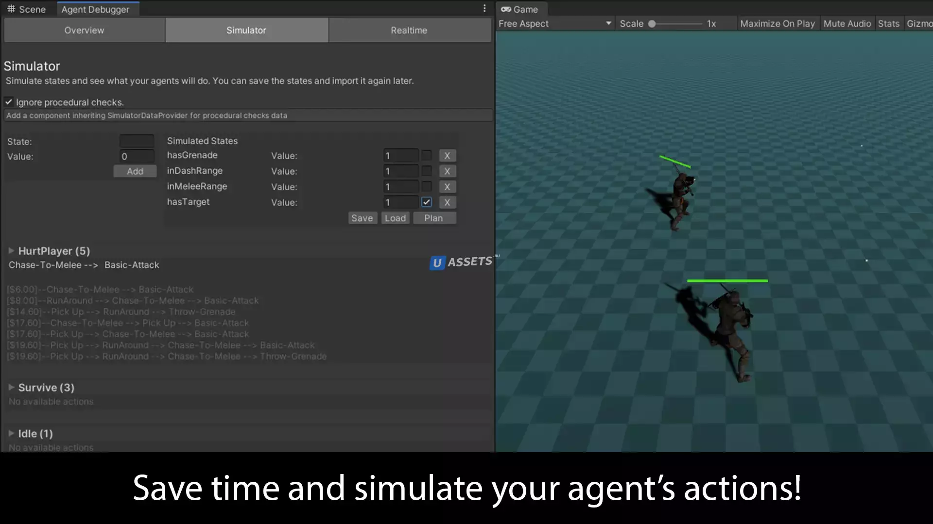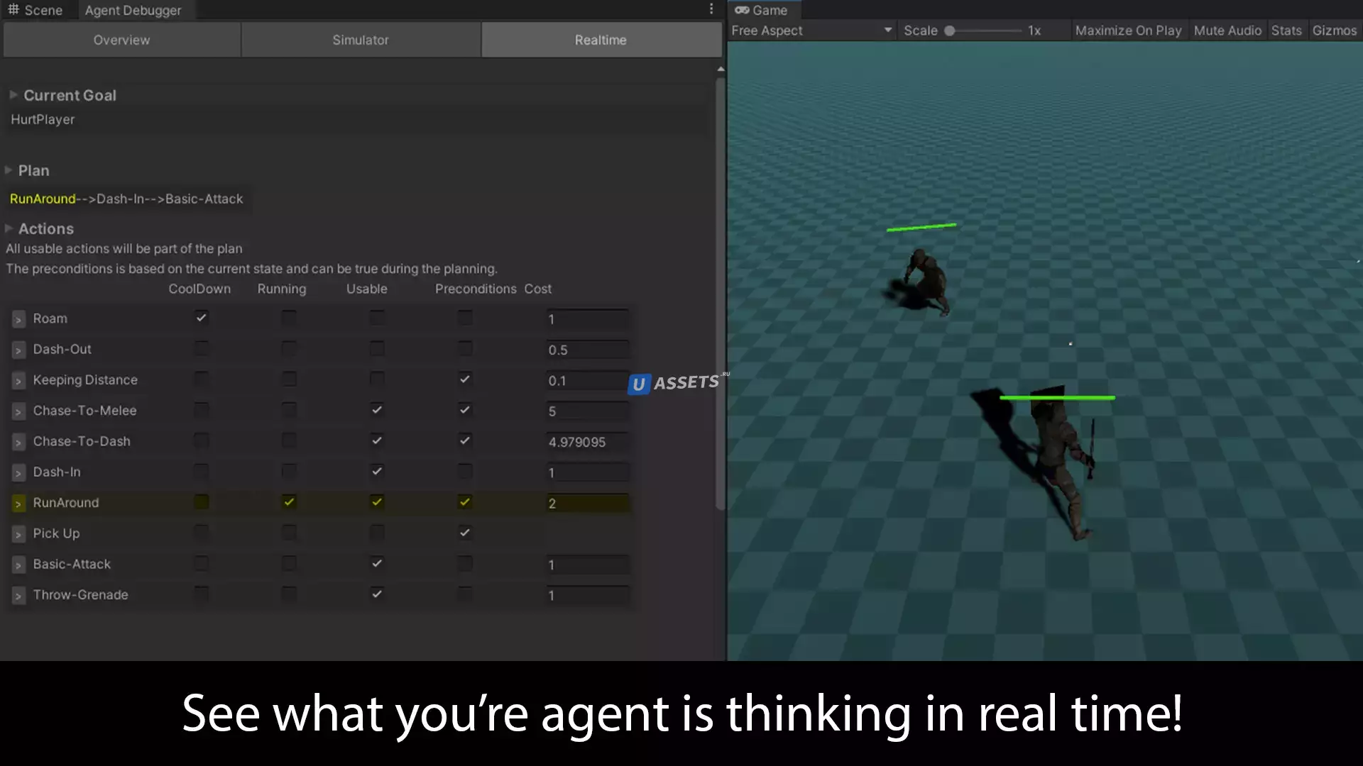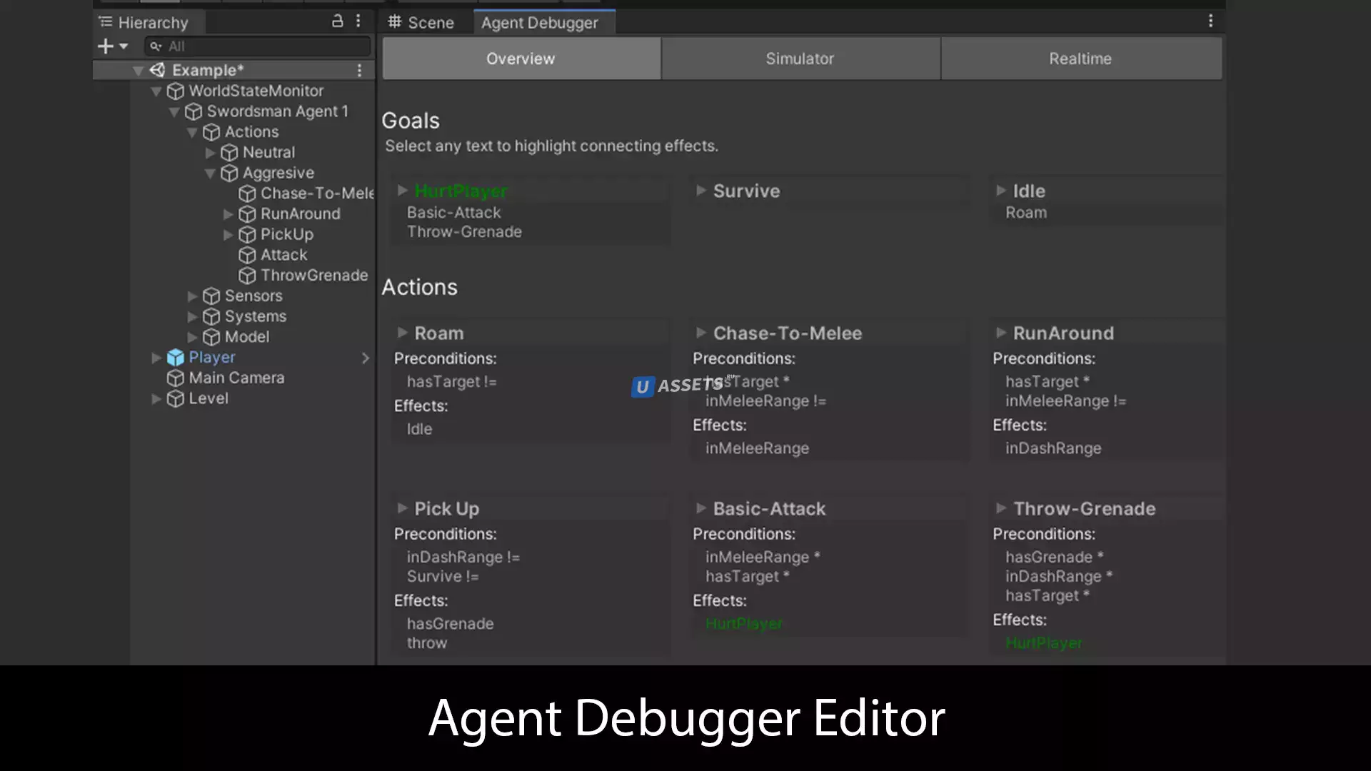 Simple GOAP основан на системе, представленной F.E.A.R. под названием GOAP, он разработан для обеспечения интуитивно понятной, гибкой и мощной платформы Unity AI как для разработки, так и для отладки при сохранении оптимальной производительности.