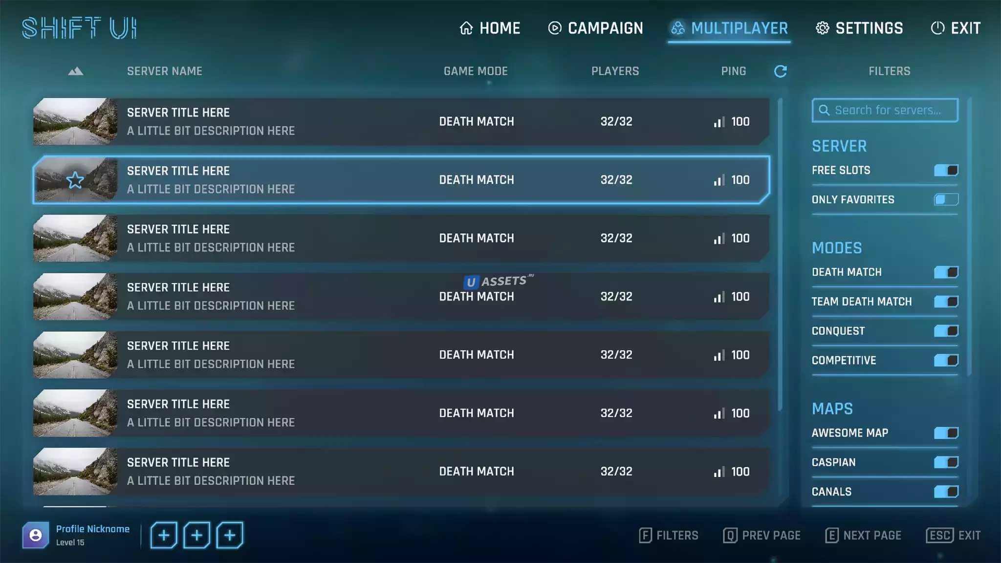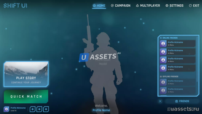 Shift UI-это набор футуристических макетов и элементов пользовательского интерфейса. Все, что вы видите, включено в пакет, настраивается, функционально и выполнено с использованием собственных компонентов Unity.