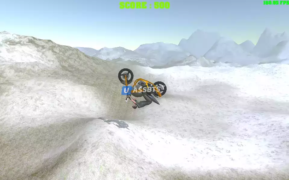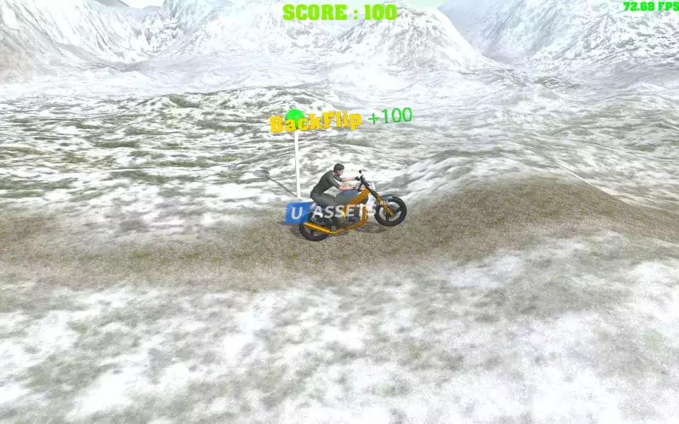 Это шаблон мотоцикла в стиле боковой прокрутки, в котором вам нужно делать сальто вперед/назад, чтобы набирать очки и дойти до финиша, чтобы победить.