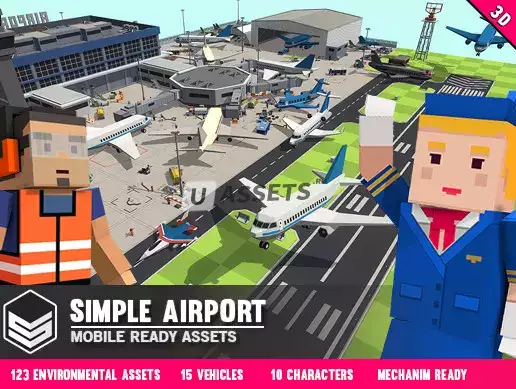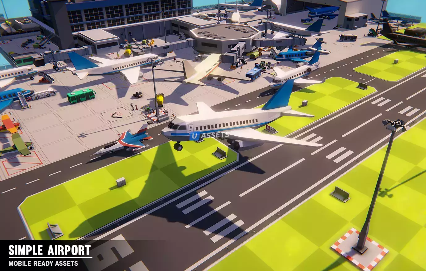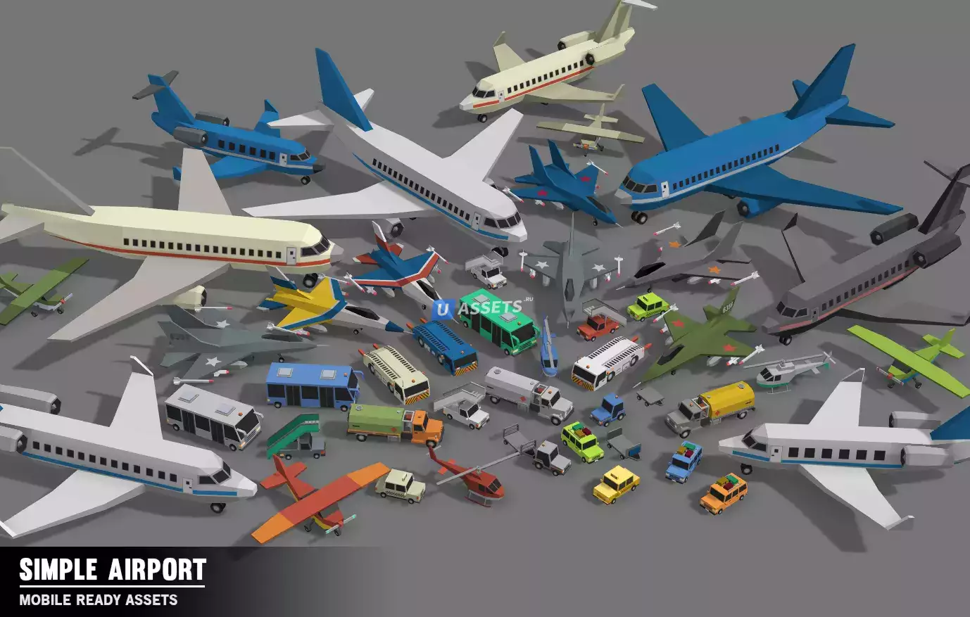Простой набор для аэропорта с самолетами, Наземной техникой, Истребителями, Вертолетами, Персонажами, Зданиями, окружением и реквизитом для создания вашей собственной игры.