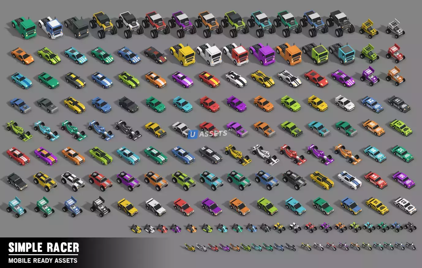 Простой набор транспортных средств, персонажей, реквизита и окружения для создания простой игры в стиле куба с другими нашими активами