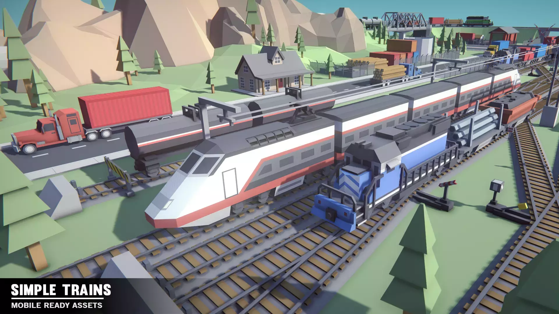 Пакет активов Train для создания игры в стиле Simple Модульные секции легко собрать в различных комбинациях.