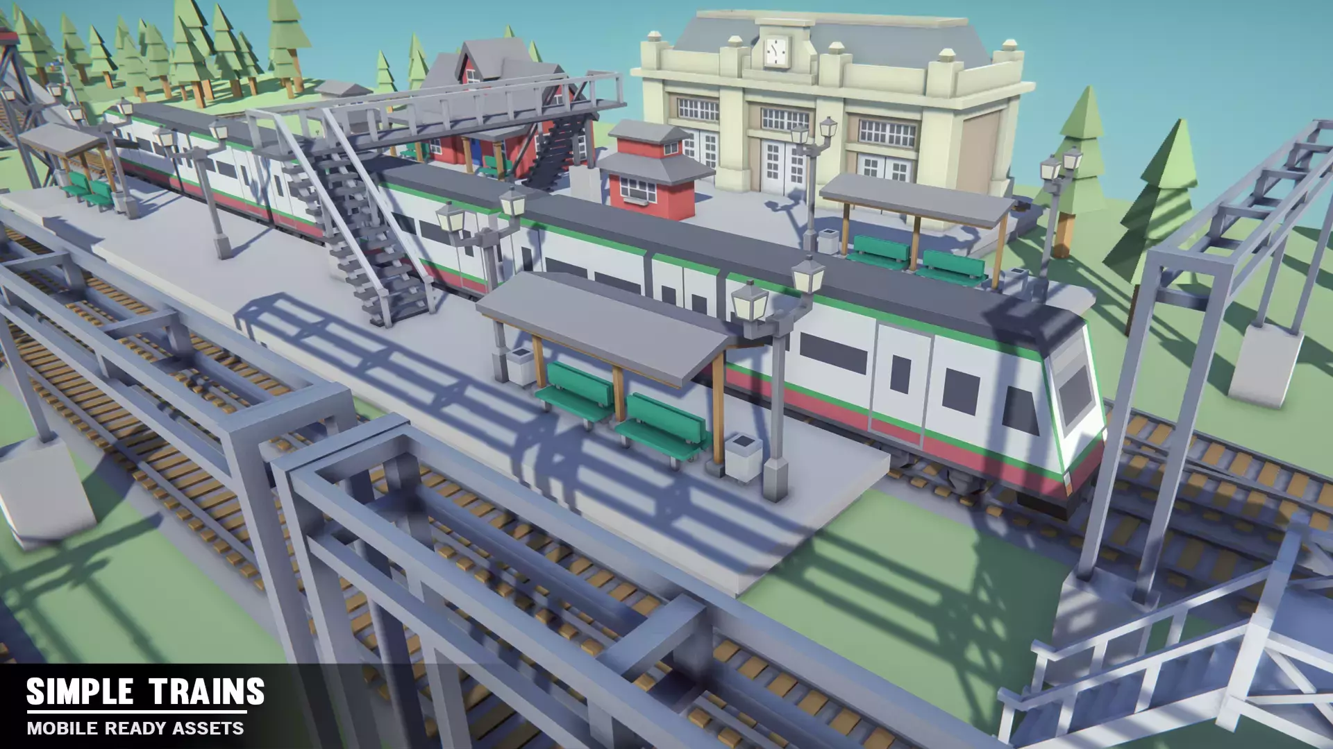 Пакет активов Train для создания игры в стиле Simple Пакет активов Train для создания игры в стиле Simple Модульные секции легко собрать в различных комбинациях. Включает демо-сцену. **Отлично смотрится в VR и на мобильных устройствах**. ◼ Совместимость