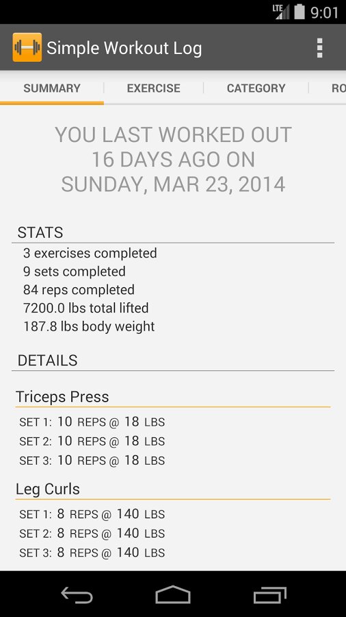 Simple Workout Log – это удобное и простое приложение для Android, которое представляет собой виртуальный дневник тренировок для занятий в тренажерном зале. В отличие от таких программ как GymApp и JEFIT, здесь нет базы данных с демонстрацией известных упражнений и всевозможных рекомендаций. А значит, она подойдет уже опытным спортсменам.
