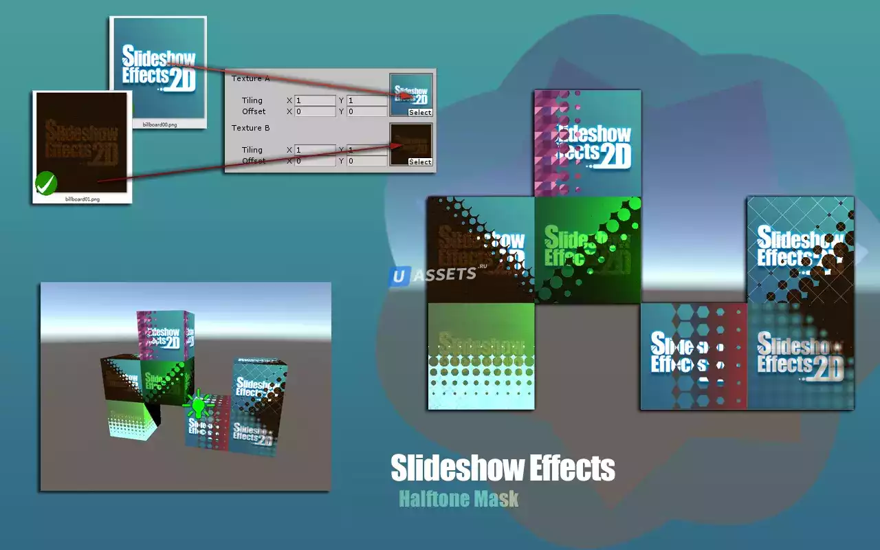 Динамические материалы для создания анимационных эффектов в слайд-шоу и игровом интерфейсе. Для камеры, пользовательского интерфейса и 3D/2D игровых объектов.