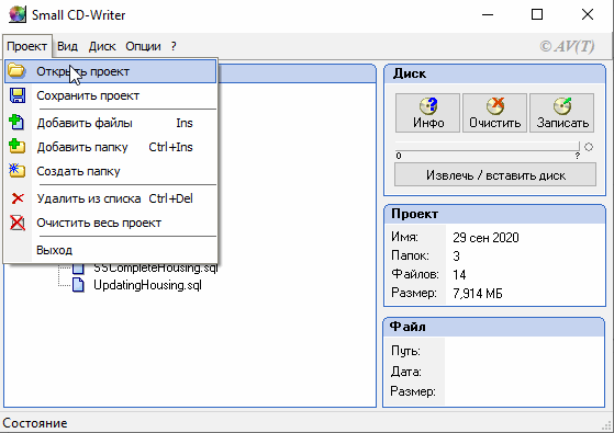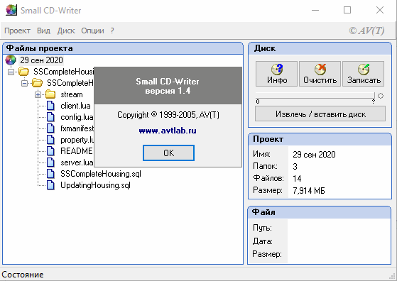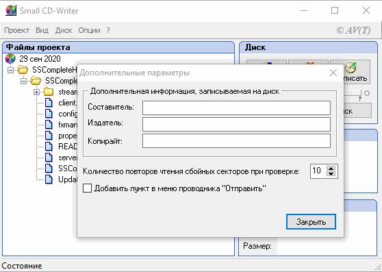 Small CD-Writer — программа для записи компакт-дисков, разработанная «AV(T) Lab» для