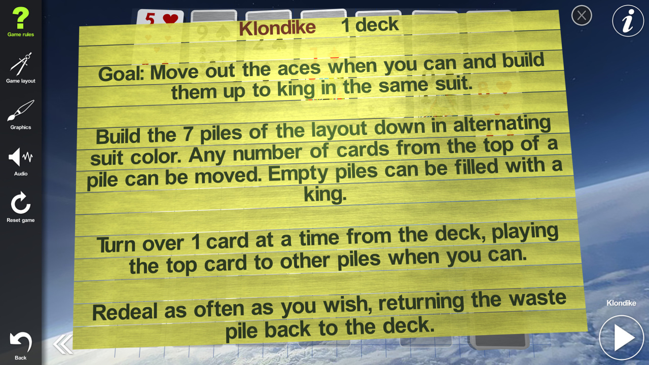 Правила каждого пасьянса в Solitaire Forever II основаны на скрупулезном анализе 41 документального источника и специализированной литературы, некоторые из которых относятся к XIX веку. Каждый вариант расклада сопровождается исторической справкой, указанием источников и интересными фактами. Игроки могут отслеживать свою эффективность через детальную статистику и испытать себя в профессиональном режиме, где отключены все подсказки. Интерфейс этой игры также позволяет настраивать визуальное расположение карт на виртуальном игровом столе.