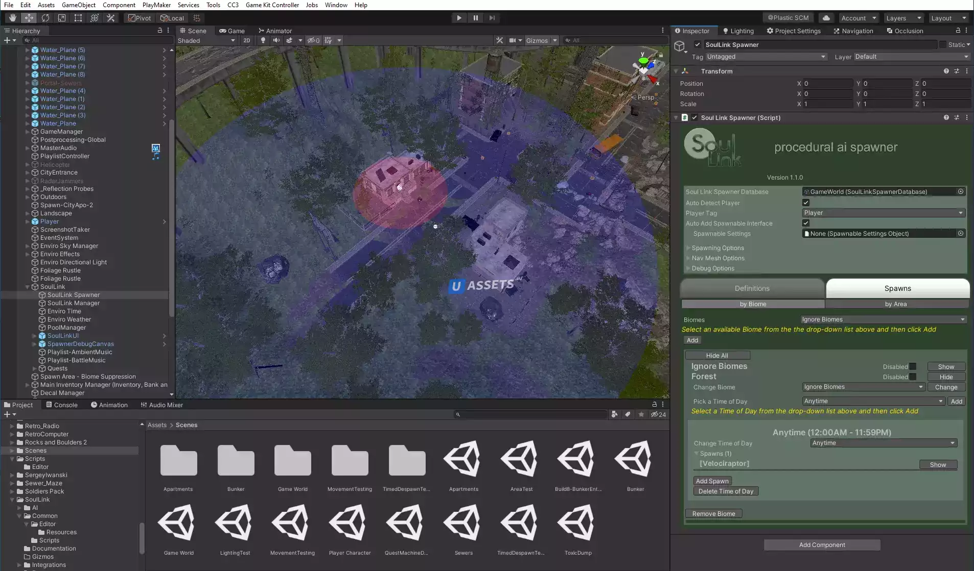 С SoulLink Spawner вы можете избежать утомительной и отнимающей много времени задачи ручного размещения популяций животных, врагов и других объектов в вашем игровом мире. Вместо этого позвольте SoulLink Spawner управлять вашими популяциями на основе биомов, территорий, регионализаций, времени суток, погоды, времен года, заданий и других условий. Вы сами решаете, сколько ИИ будет находиться в вашем мире одновременно, и SoulLink Spawner будет создавать и уничтожать их по мере необходимости, по мере того как ваш игрок перемещается по игровому миру. Вы управляете диапазонами нереста/отчаяния, а также различными ограничениями, такими как высота над уровнем моря и угол наклона. Вы даже можете ограничить свои появления на основе слоев.