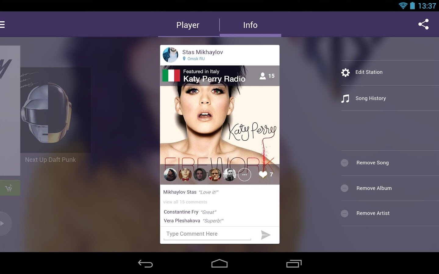 SOUNDAYMUSIC 5.0.0 превращает прослушивание музыки в интерактивный социальный опыт, объединяя обширный каталог треков с функциями для общения и обмена.