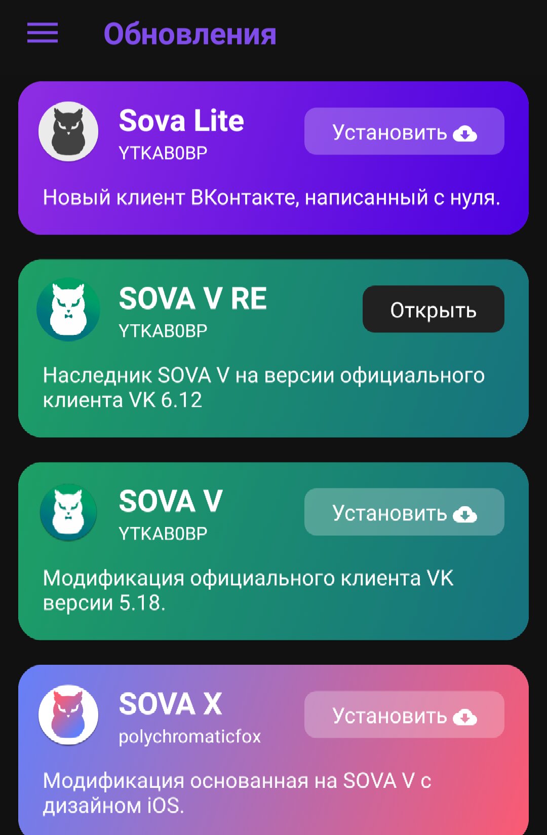 Использование SOVA OTA 2.0.0 делает процесс поддержки модифицированного клиента ВК максимально простым и эффективным, гарантируя своевременный доступ ко всем улучшениям.