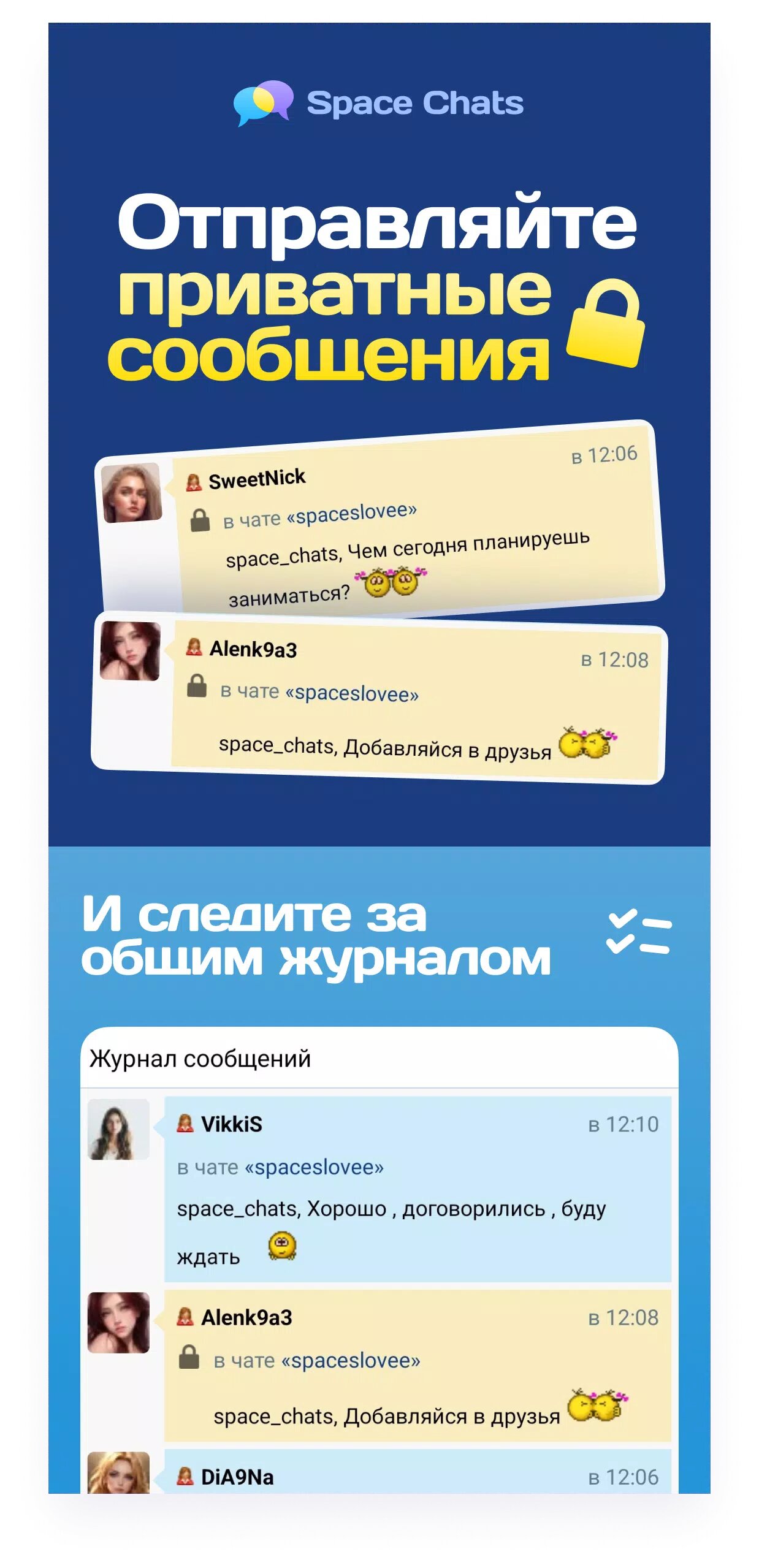 Приложение SPACE CHATS 1.11.18 предлагает широкий набор функций для комфортного и безопасного взаимодействия: