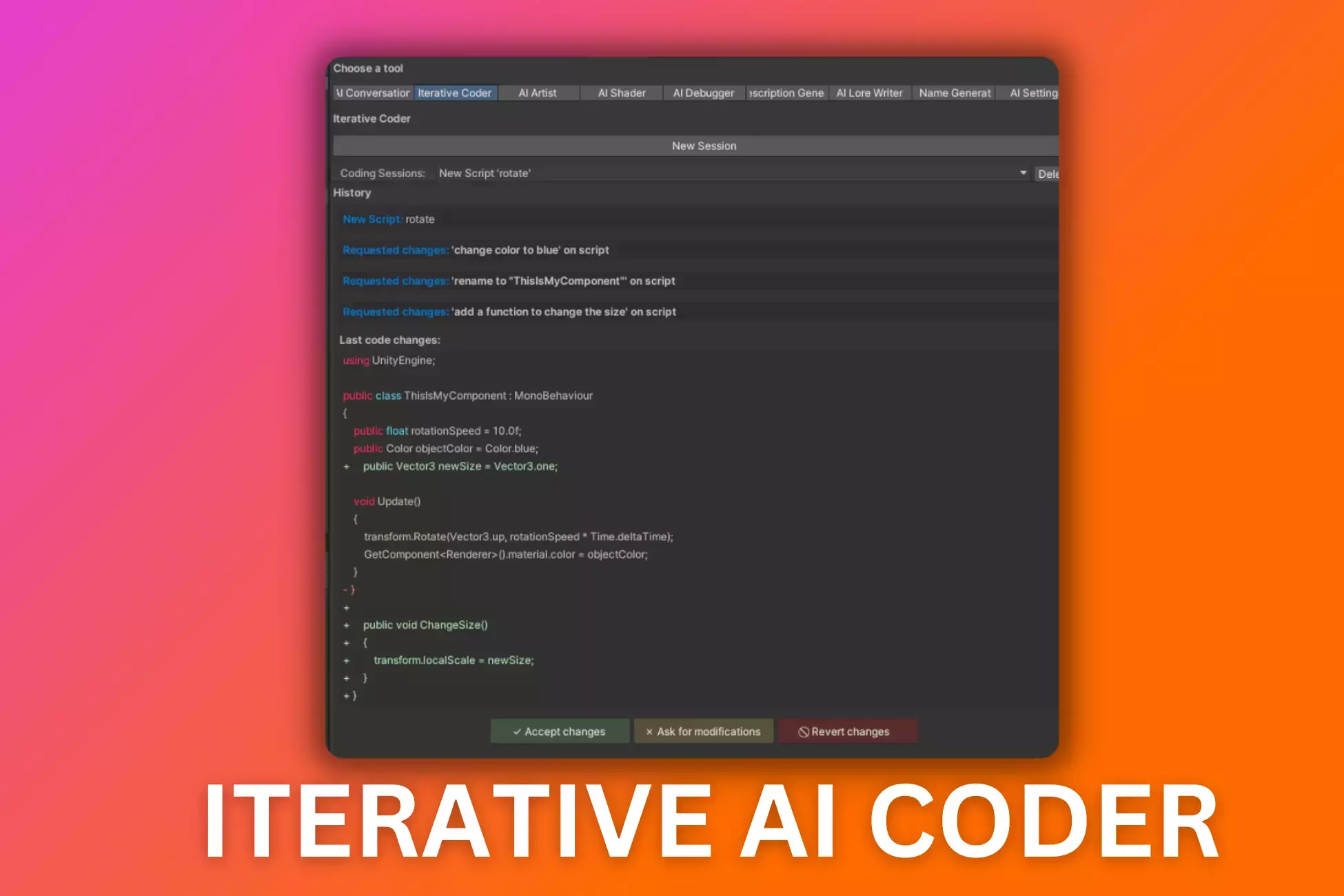 🧑💻 Итеративный ИИ-кодер: Полностью создавайте скрипты, не написав ни строчки, итеративно спрашивая ИИ об изменениях и принимая или запрашивая их. С этим активом кодирование превращается в разговор!
