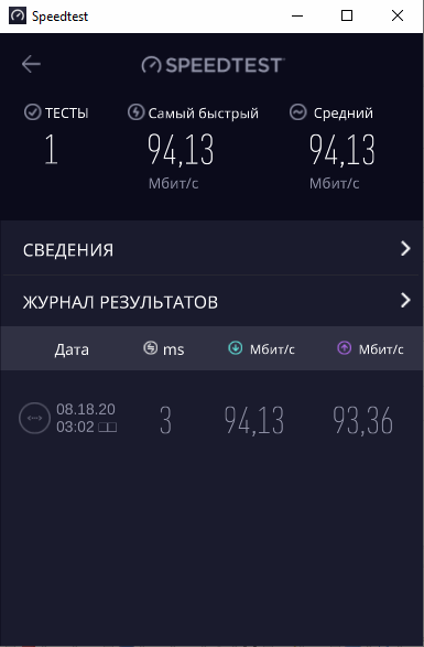 Скорость загрузки, отправки. Показатели отклика с указанным сервером. При быстрой проверке, программа автоматически выбирает ближайший сервер и задает размер файла для анализа скорости передачи данных.