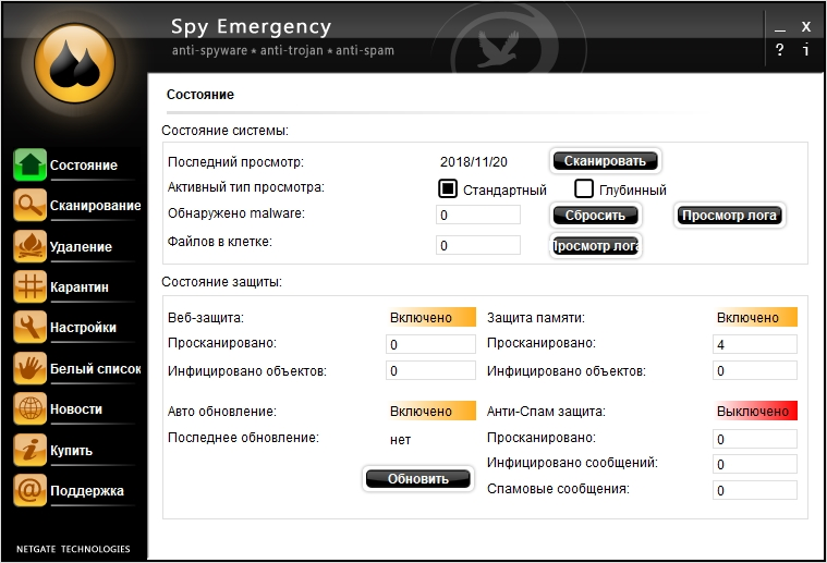 Spy Emergency распространяется по коммерческой лицензии, у нас вы сможете скачать только ознакомительную версию на 15 дней, после чего работа антивируса будет ограничена.