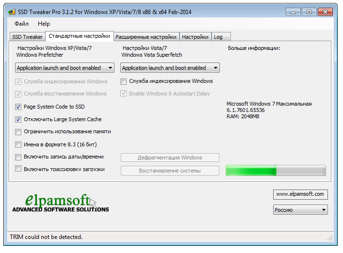 Утилита позволяет настраивать параметры, связанные с оптимизацией при обмене данными в Windows XP, Vista, 7, 8 и 10. Правильно выбранная конфигурация приведет к повышению производительности системы и, в частности, уменьшит время запуска приложений, открытия файлов и повысит жизненны цикл жесткого диска. Основные настройки производятся в реестре системы, к таким относятся TRIM, Superfetch, Prefetcher, некоторые из них необходимо отключить, другие наоборот.