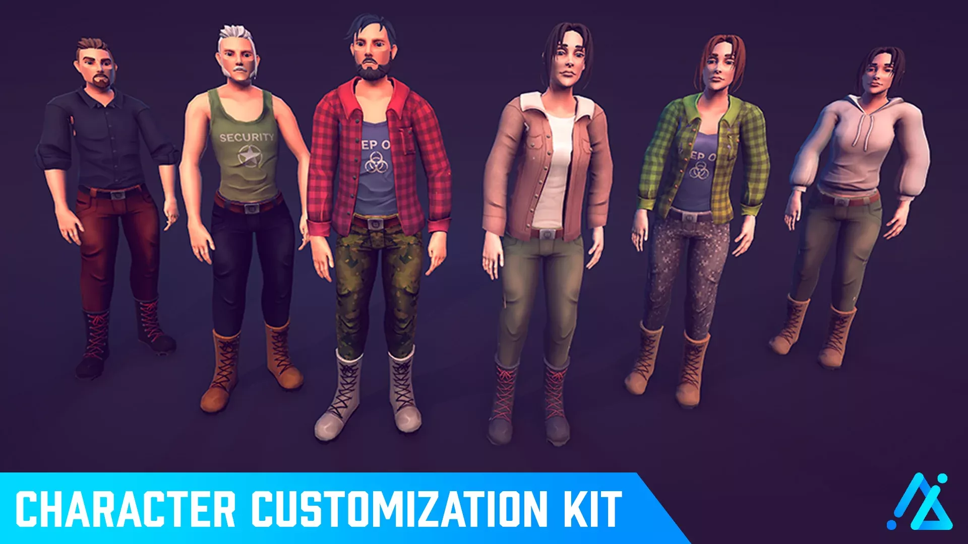 Легкий, веселый и гибкий низкополигональный набор ресурсов, который идеально подходит для создания прототипов или добавления в низкополигональный мир. Более 2000 вариантов создания персонажей, от одежды до прически, текстур и цветов.