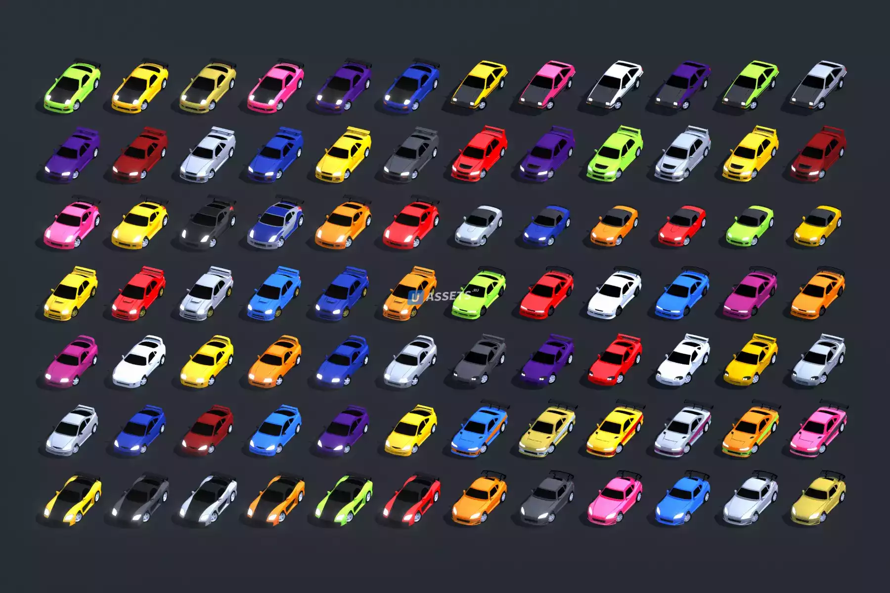 Это полный набор из 14 стилизованных японских автомобилей. Работает с любым автомобильным контроллером.
