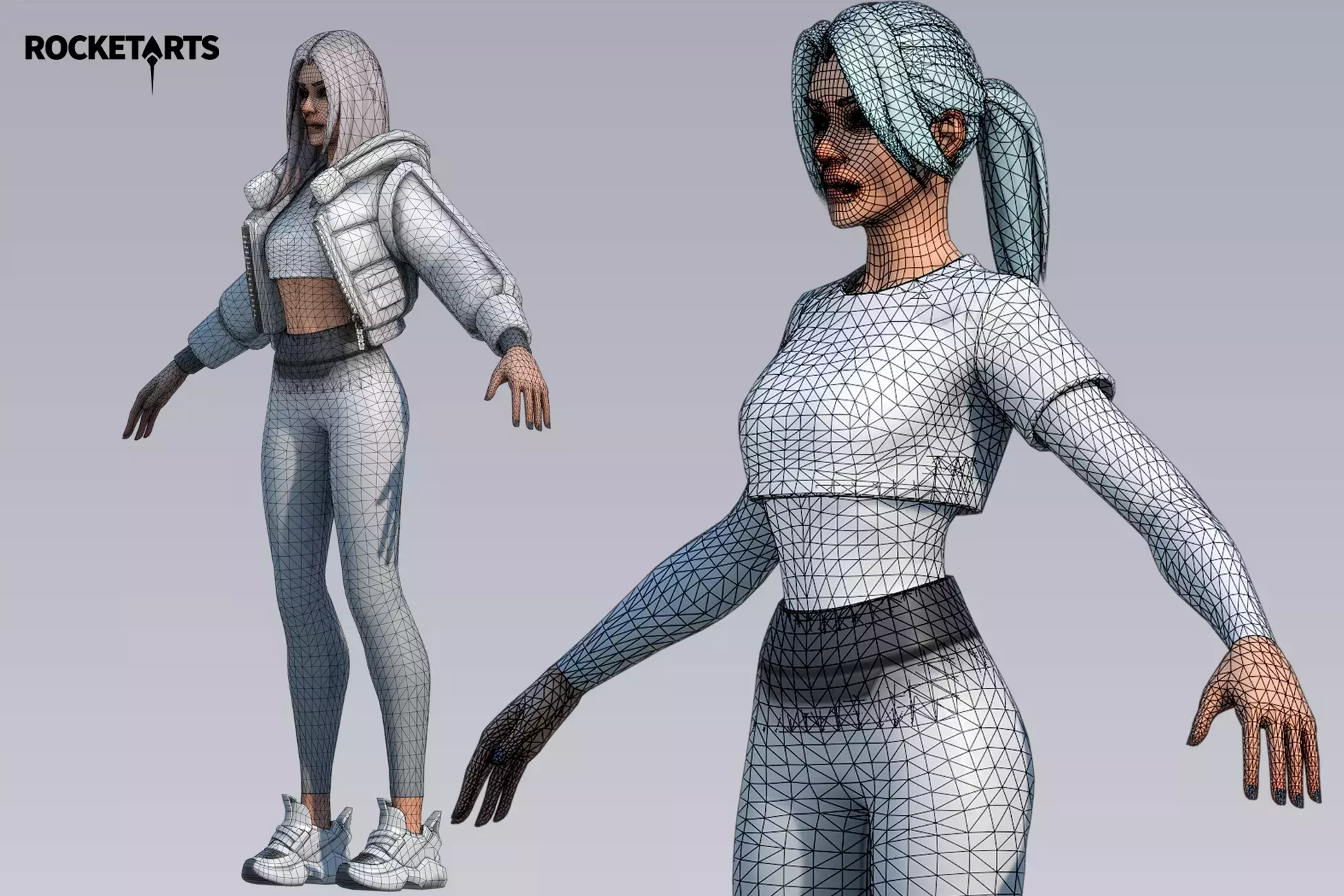 Модульный стилизованный женский персонаж. Содержит прически, аксессуары и несколько вариантов частей тела.
