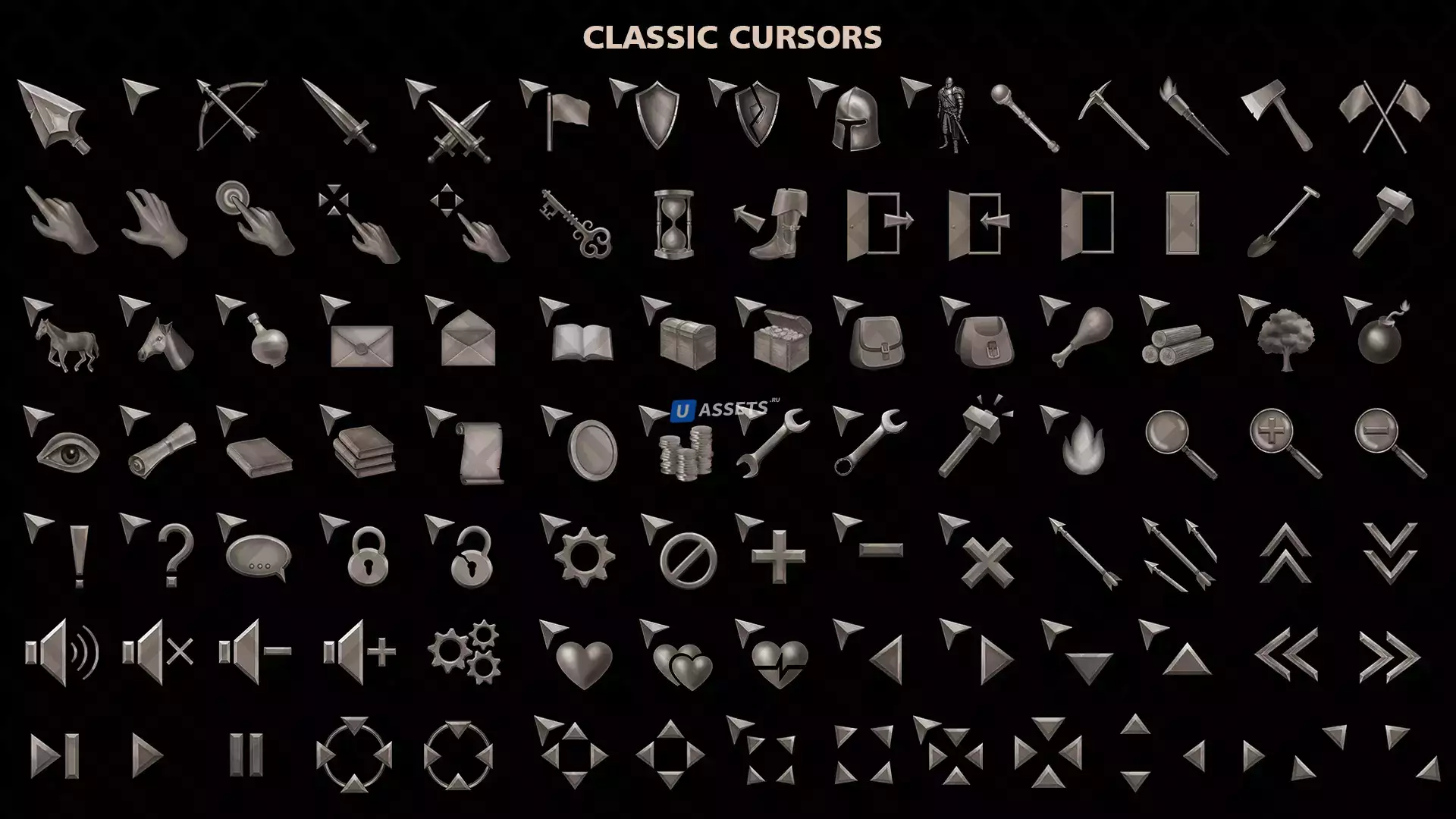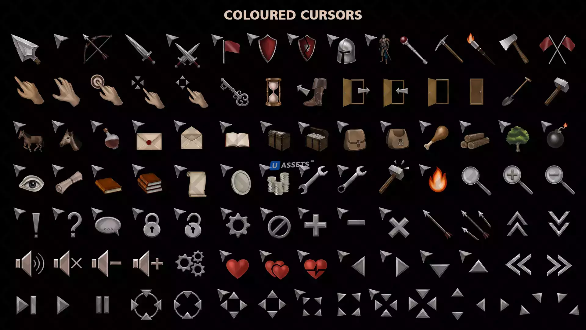 - 100 уникальных курсоров (png 256x256 пикселей, 64x64 пикселей);