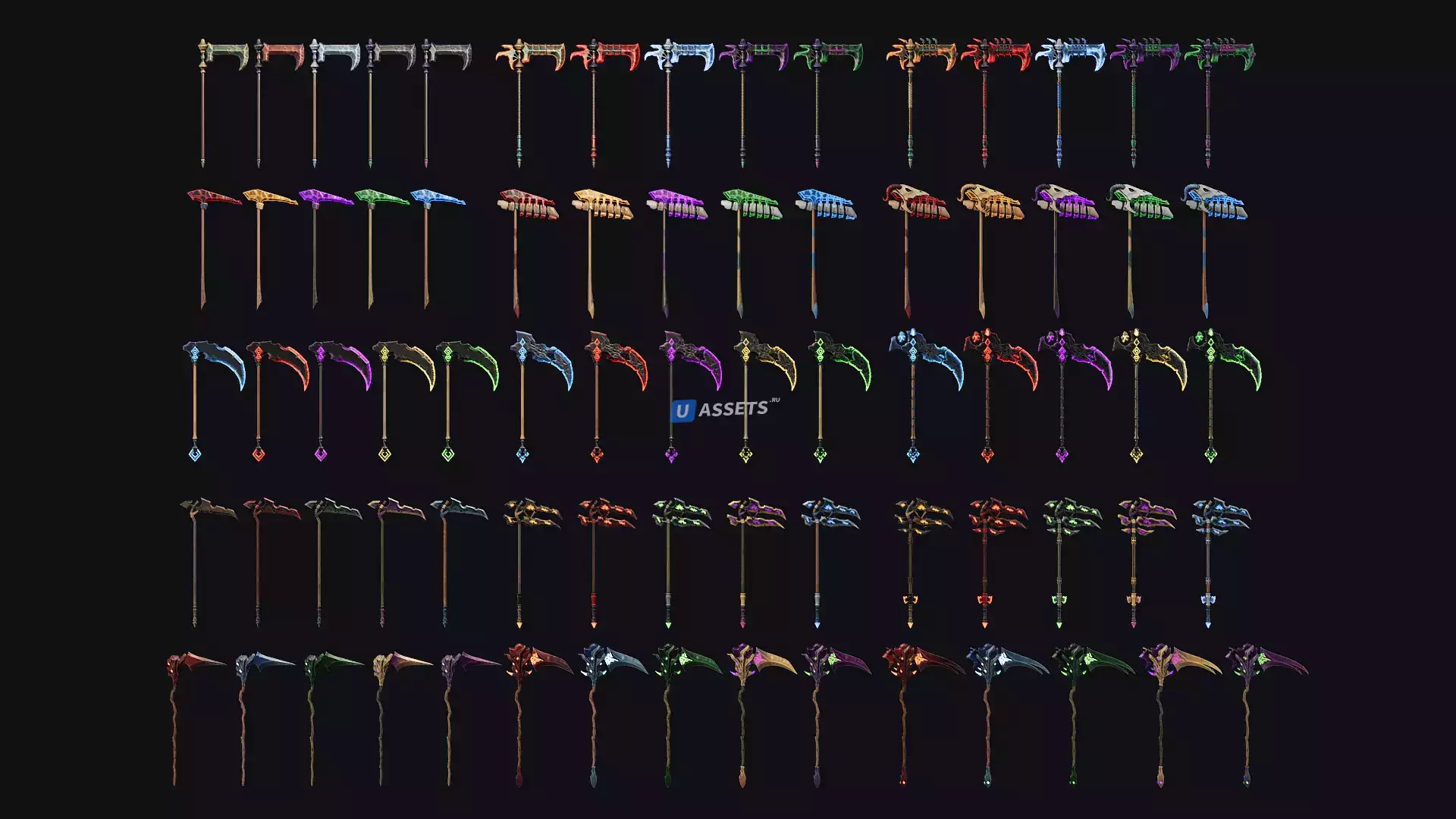 Каждое оружие имеет 5 цветовых вариаций