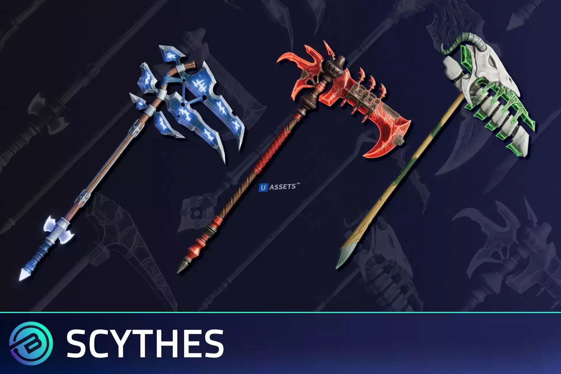 Топоры, Мечи, Щиты, Булавы, Молоты, Луки, Арбалеты, Посохи, Книги Заклинаний, Жезлы, Косы, Древки, Копья, Кинжалы, Когти, Рукавицы, Кулачное Оружие, Мушкеты, Пистолеты