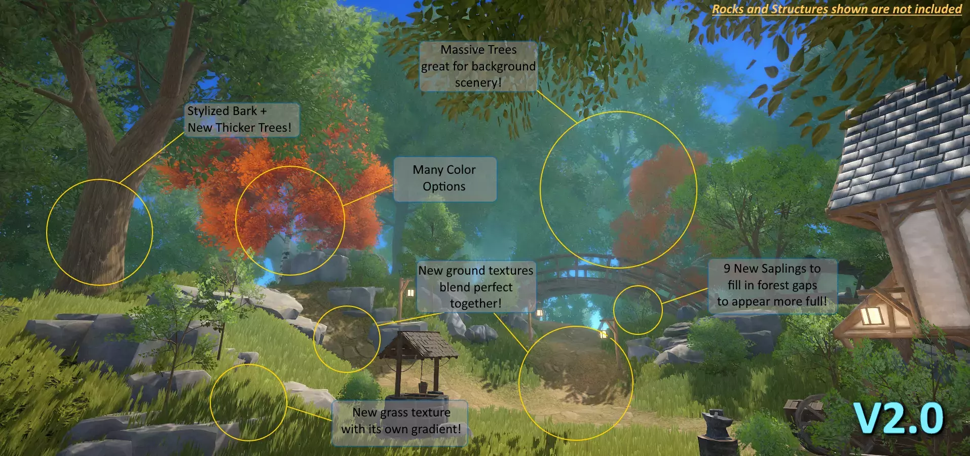Важный! Вместо того чтобы снимать новое видео, демонстрирующее это новое обновление для версии 2, я вместо этого сделал небольшую публичную демонстрационную сцену, чтобы все могли попробовать. В этой демонстрационной сцене представлены все новые деревья, включенные в версию 2, и представлены некоторые другие мои наборы, смешанные и подобранные с этими деревьями.