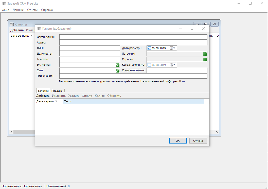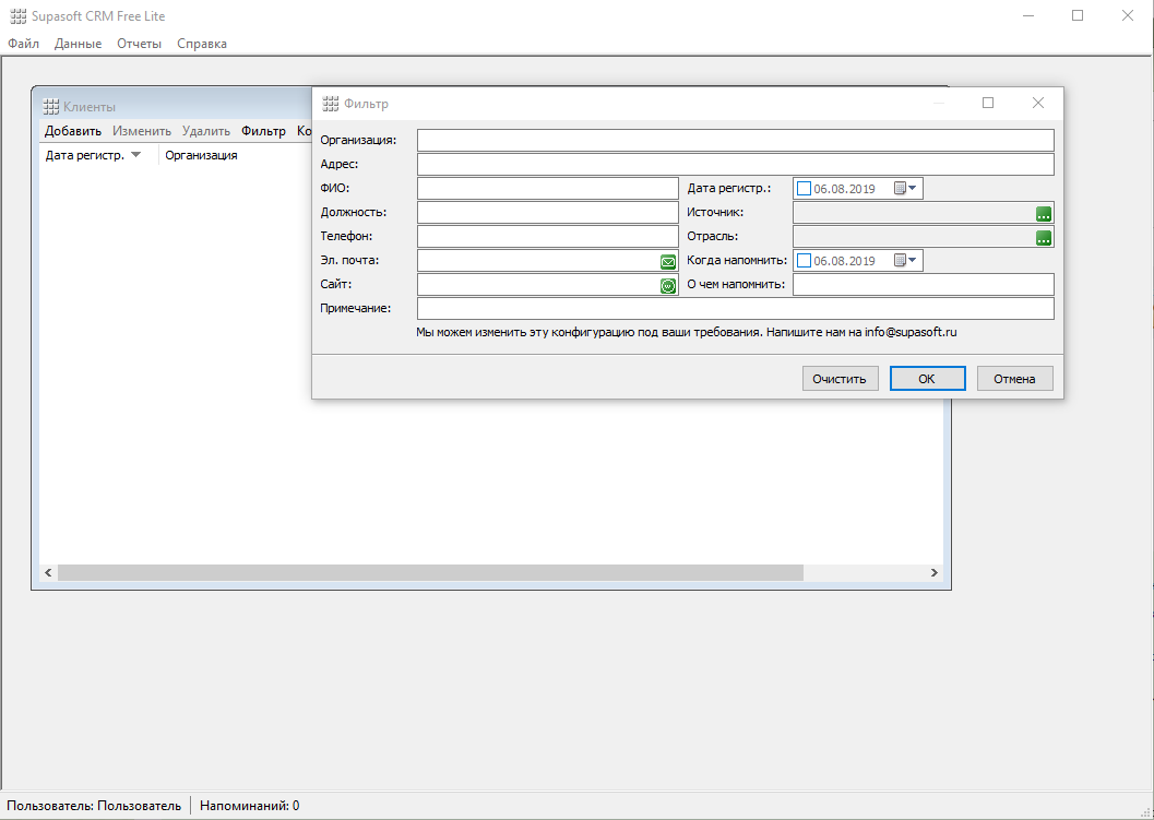 Существует конечно же расширенная коммерческая версию Supasoft CRM, которая обладает более продвинутым функционалам, хотя для большинства задач подойдет и Free версия, выбор за вами.