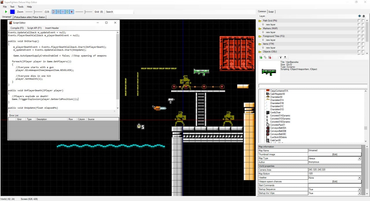 Superfighters Deluxe – это развитие популярной флэш-игры Superfighters. Этот пиксельный платформер-экшен предлагает захватывающий мультиплеер, где игроки борются за звание единственного выжившего. В игре нет предопределенных классов – победа зависит только от вашего мастерства, реакции и везения.