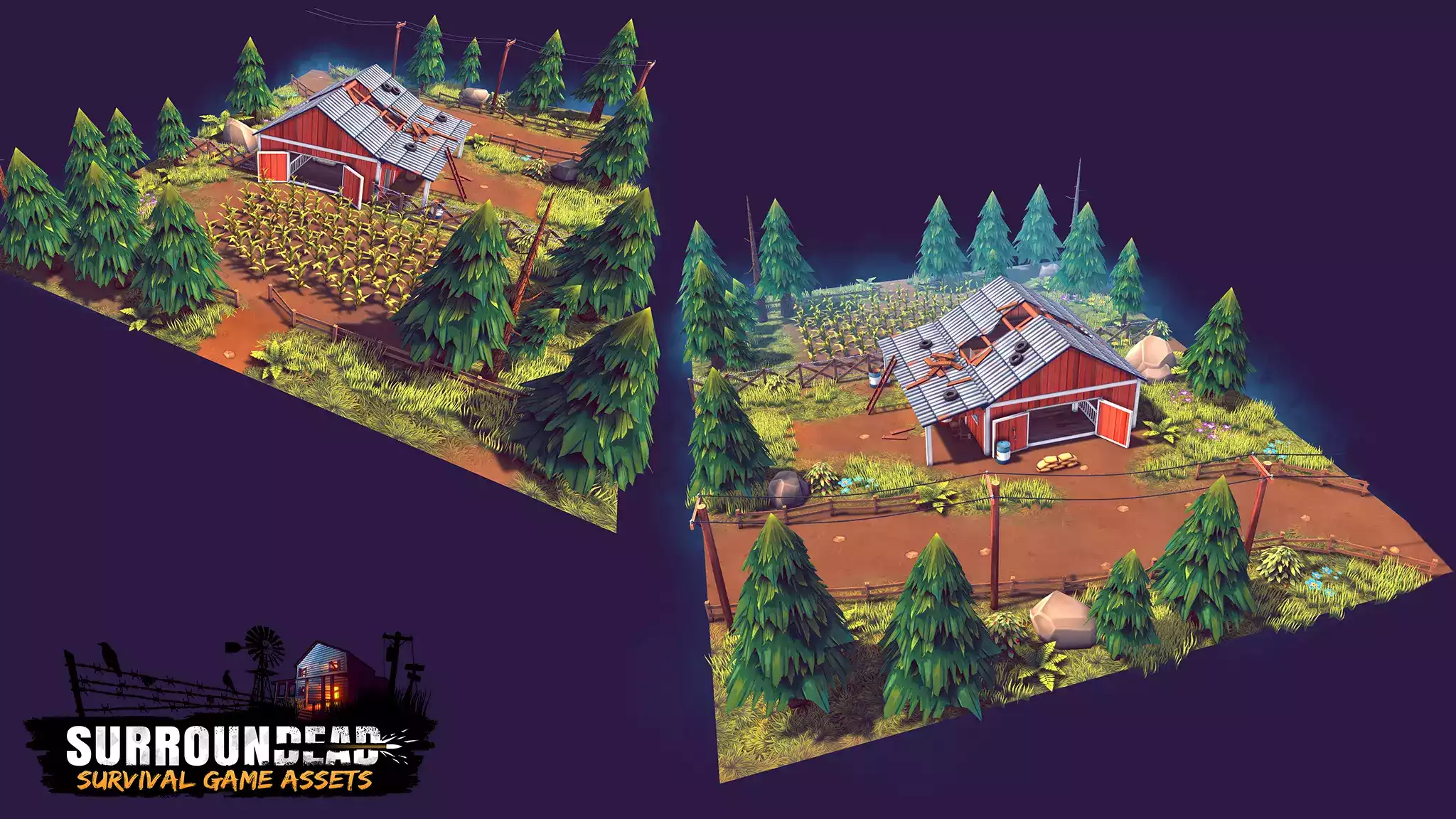 SurrounDead - Bundle — это набор, который включает в себя 4 актива и содержит более 1300 сеток fbx и 529 текстур, нарисованных вручную, чтобы помочь вам начать игру на выживание/после апокалипсиса.