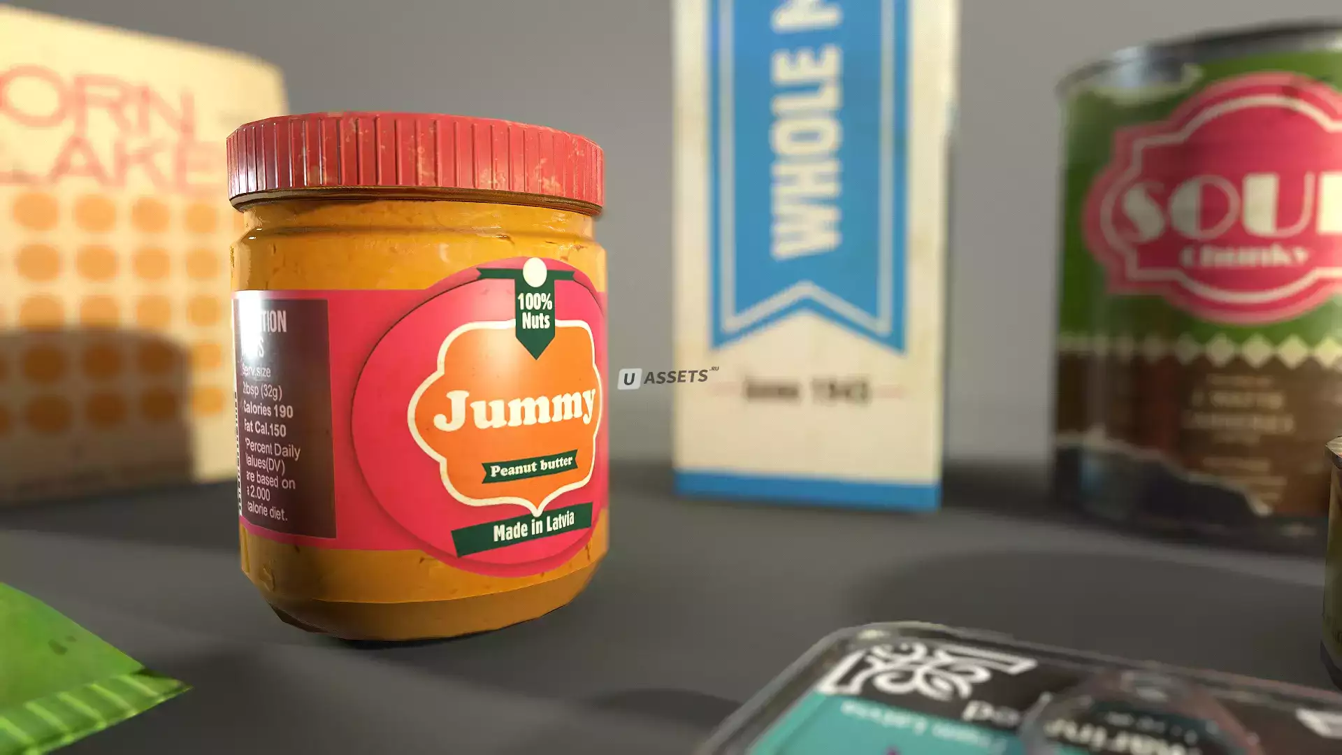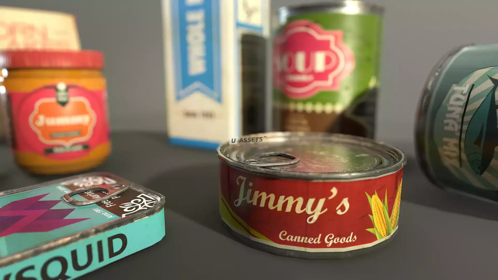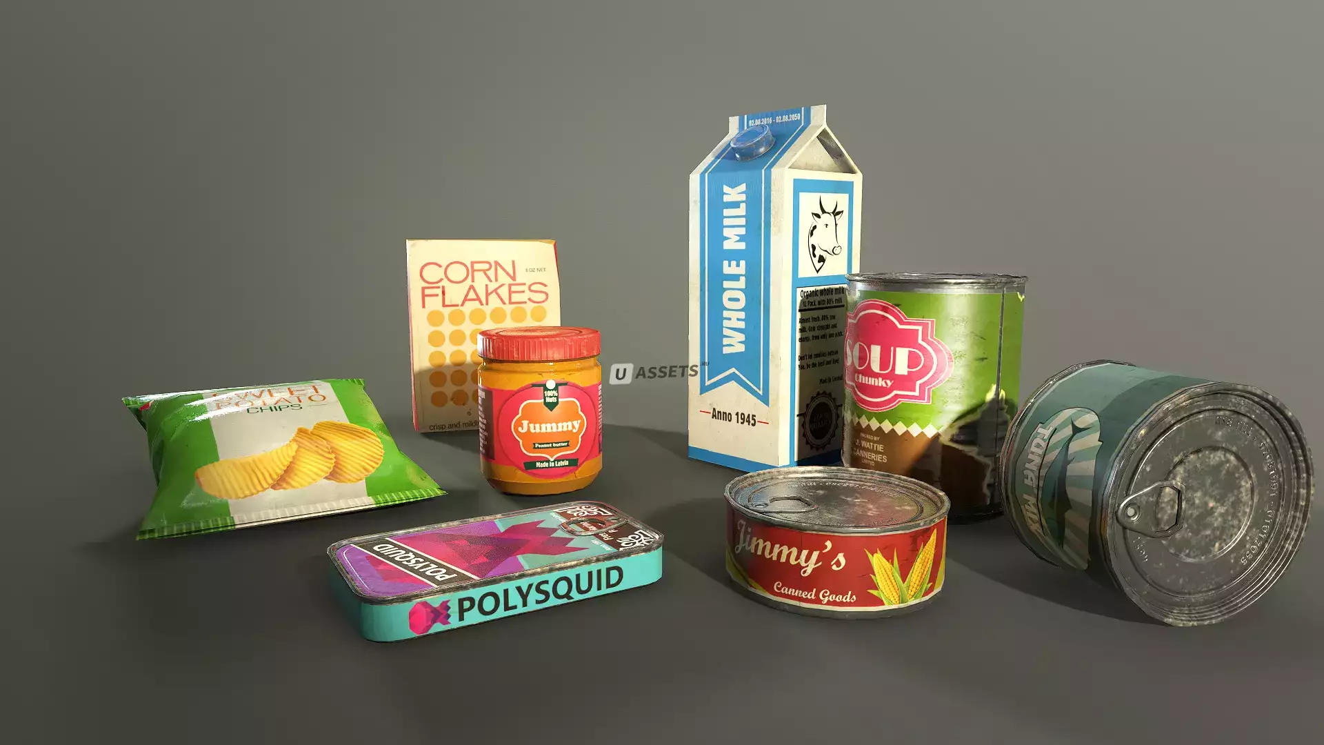 Модели: пак состоит из 2 файлов fbx по 4 пропа в каждом. Они сгруппированы как: баночная и коробочная упаковка. Количество полигонов колеблется от 100 до 400.