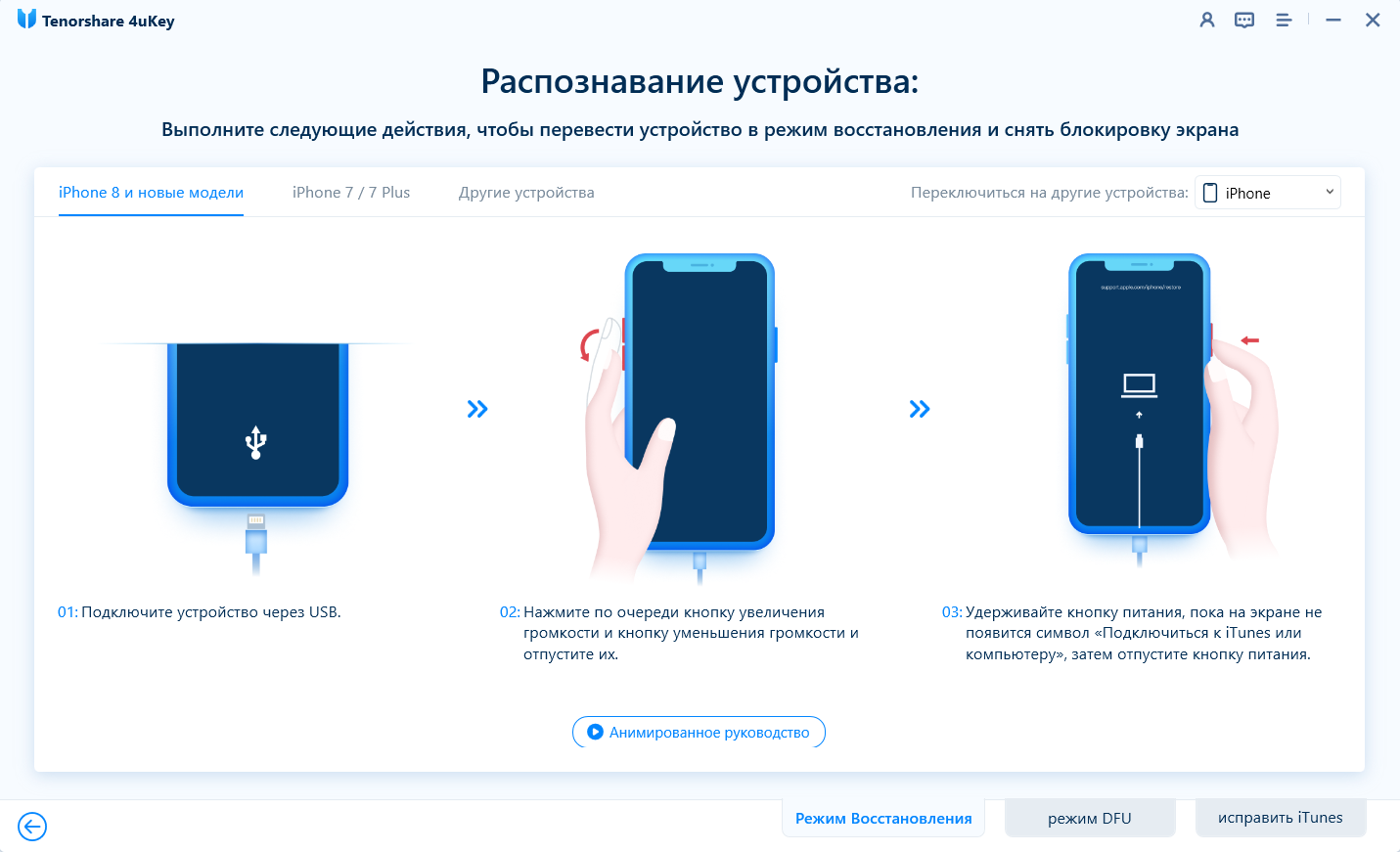 4uKey поддерживает последние версии iOS, включая iOS 16, и совместима с большинством моделей iPhone и iPad. Благодаря интуитивно понятному интерфейсу и высокой скорости работы, программа делает процесс восстановления доступа простым и безопасным, не требуя технических навыков.