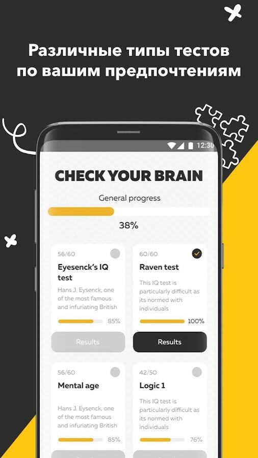 Приложение ТЕСТ ДЛЯ МОЗГА – ПСИХОЛОГИЧЕСКИЙ И IQ ТЕСТ 3.7.0 представляет собой сборник проверенных методик для оценки интеллектуальных способностей и психологического портрета. Оно создано на основе мировых стандартов и помогает определить уровень логического мышления, IQ и эмоционального состояния.
