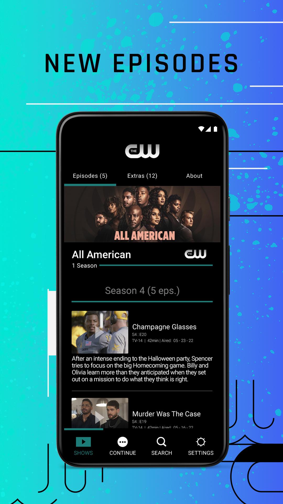 Смотрите все на The CW и многое другое совершенно бесплатно и без необходимости входа в систему. Приложение позволяет наслаждаться последними выпусками сериалов «Все американцы» и «Супермен и Лоис», популярными шоу, такими как «90210», «Сонная лощина» и «Последователи», а также открывать для себя новые фильмы в постоянно пополняющейся коллекции.